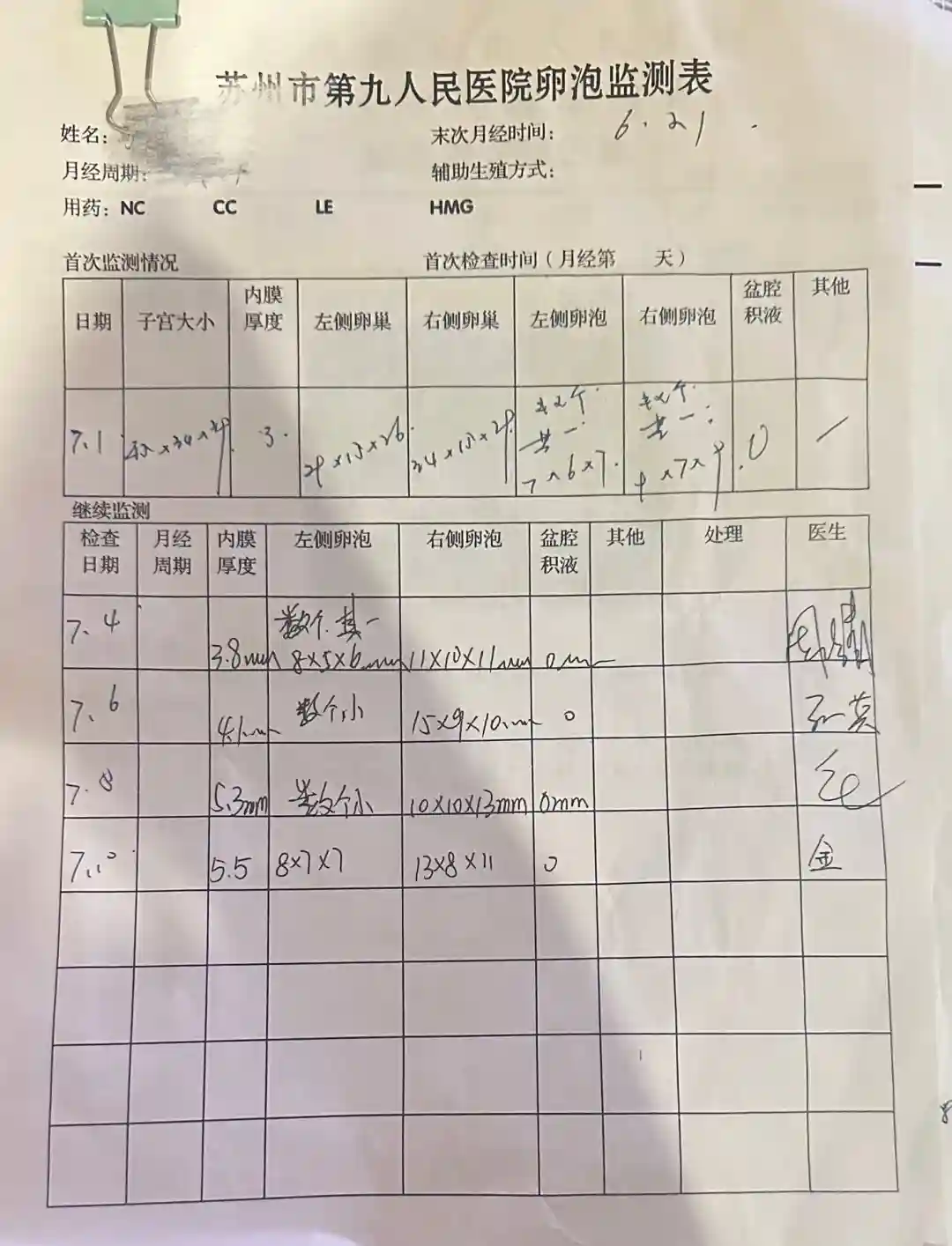 然后到了6月依然是未孕,经亲戚介绍就去了九院一个妇科徐主任那看了下,一见面,那主任就说我是不是多囊,又经历了一个周期的排卵监测(图1️⃣),显示我卵泡长得不好,内膜也薄,给我又推荐了一位苏大附一的夏主任,她说看我之前病例,我卵泡长得不是很好,而且感觉内膜也受损,但我一没流产史,二没得过结核,也不清楚是不是,建议我做个输卵管造影,想着这都第二个医生这么建议了,就决心还是做一下吧。