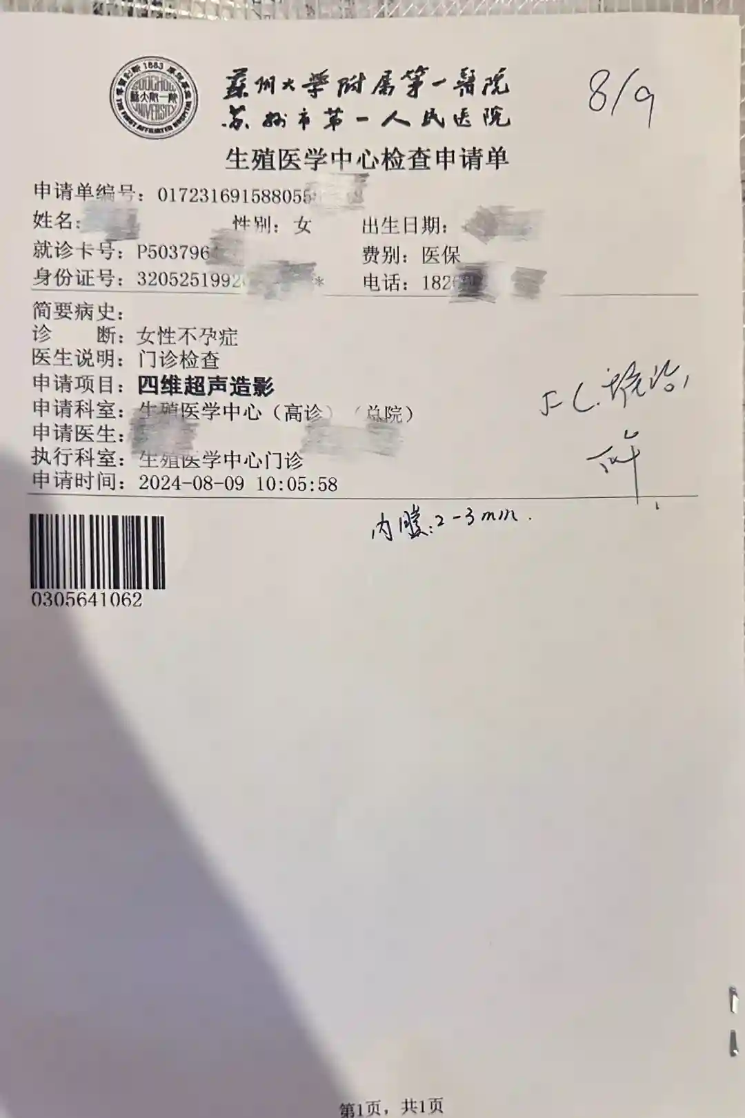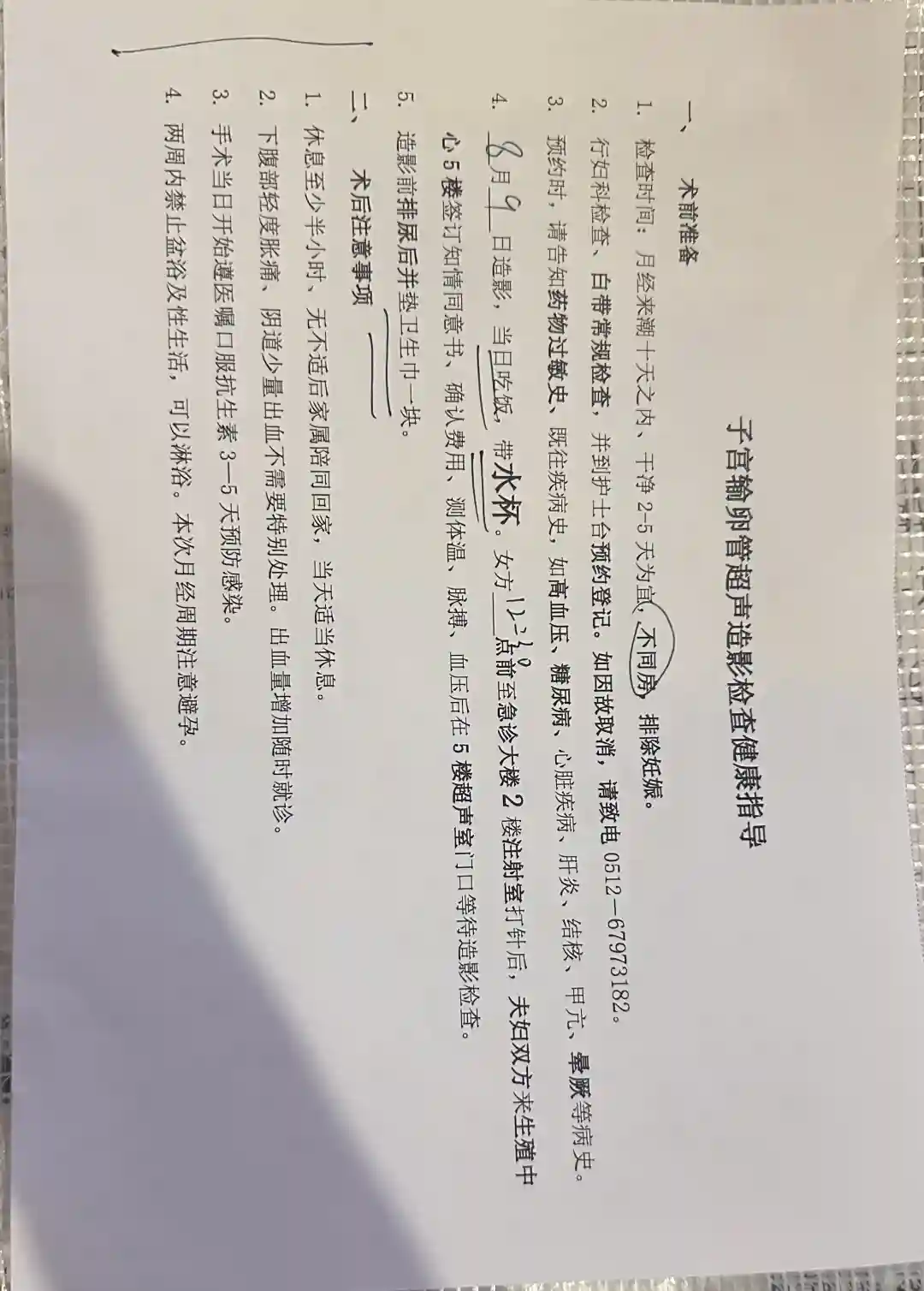 就到了今天(8月9日),月经过后的第4天,一早到了苏大附一院,做了白带常规和尿检,预约了下午的造影以及术后术中药都领取了,谁知道进去一看,做造影的医生说我内膜太薄了,现在才2-3mm,做不了,不建议做😔否则可能会损伤身体的,也可能造成发炎和粘连。