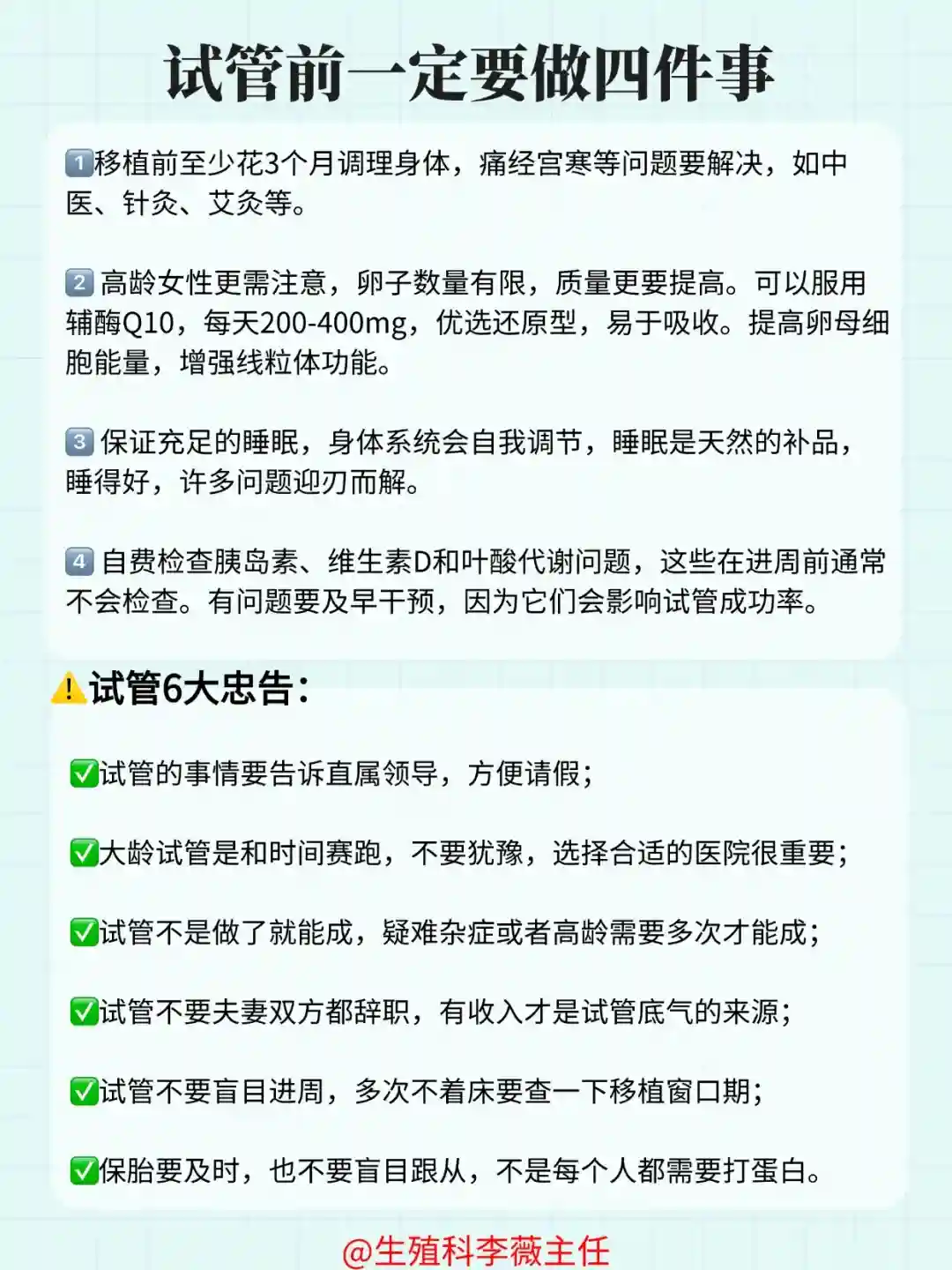 1️⃣ 移植前至少花3个月调理身体,痛经宫寒等问题要解决,如中医、针灸、艾灸等。