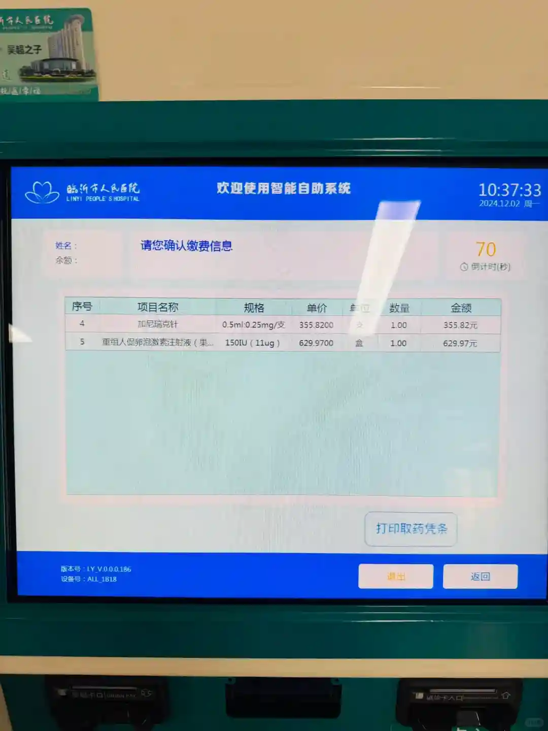 卵泡生成素:36元 7.030mlU/ml 合计:113.32元,报销后85.1元B超:74.9元,报销后31.7元