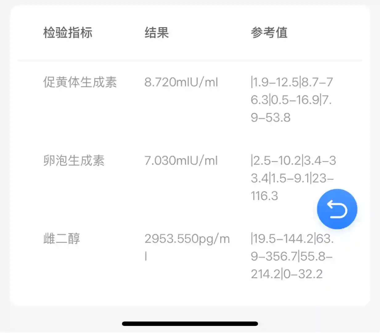 雌二醇:41.32元 2953.550pg/ml