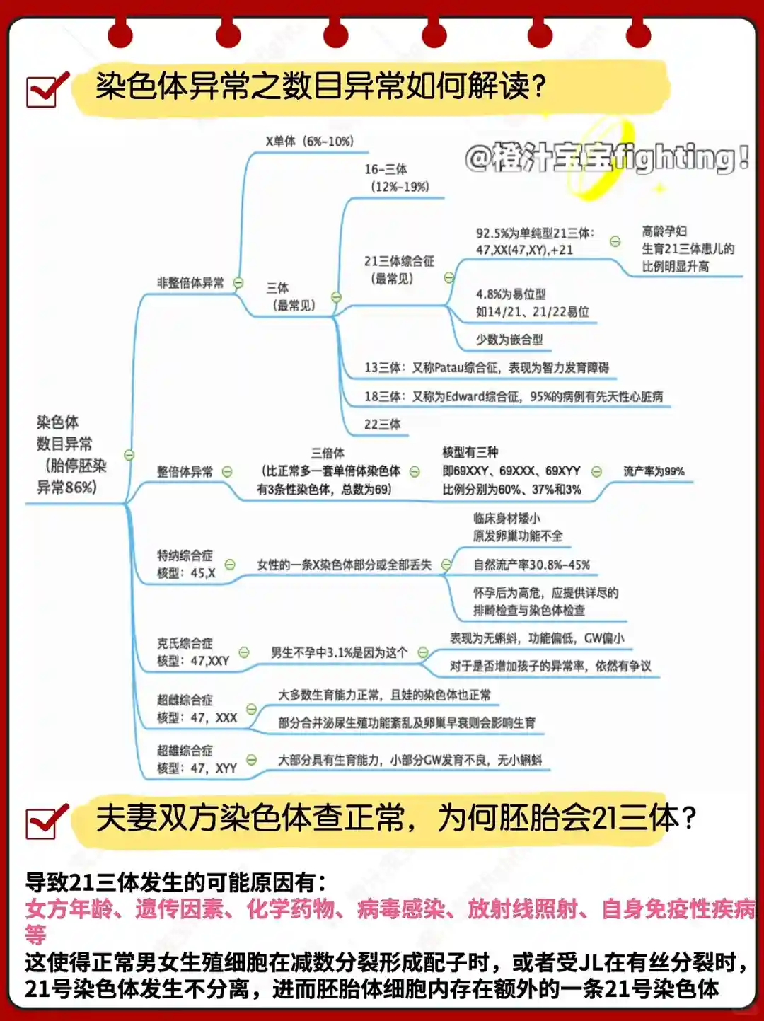 12. 胚胎染色体21三体,父母染色体正常吗?