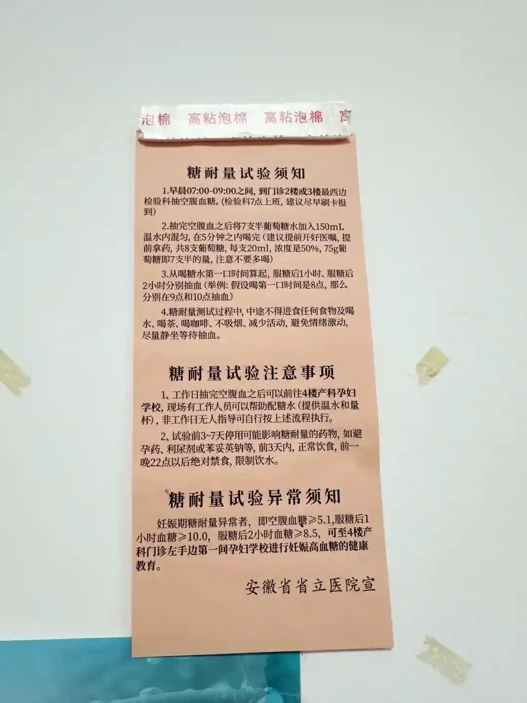 7⃣️总共需要抽3次血,空腹一次,喝完葡萄糖后一小时和2小时分别抽2管血