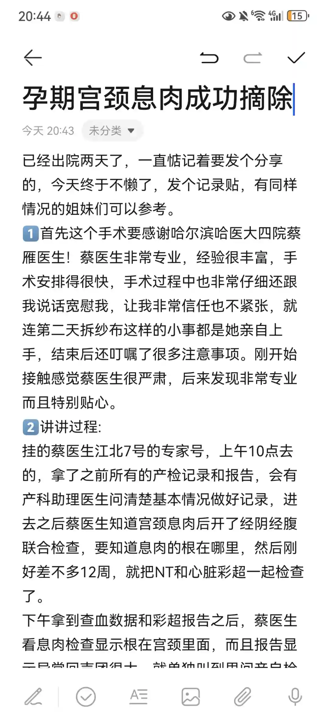 1️⃣首先这个手术要感谢哈尔滨哈医大四院蔡雁医生!蔡医生非常专业,经验很丰富,手术安排得很快,手术过程中也非常仔细还跟我说话宽慰我,让我非常信任也不紧张,就连第二天拆纱布这样的小事都是她亲自上手,结束后还叮嘱了很多注意事项。刚开始接触感觉蔡医生很严肃,后来发现非常专业而且特别贴心。