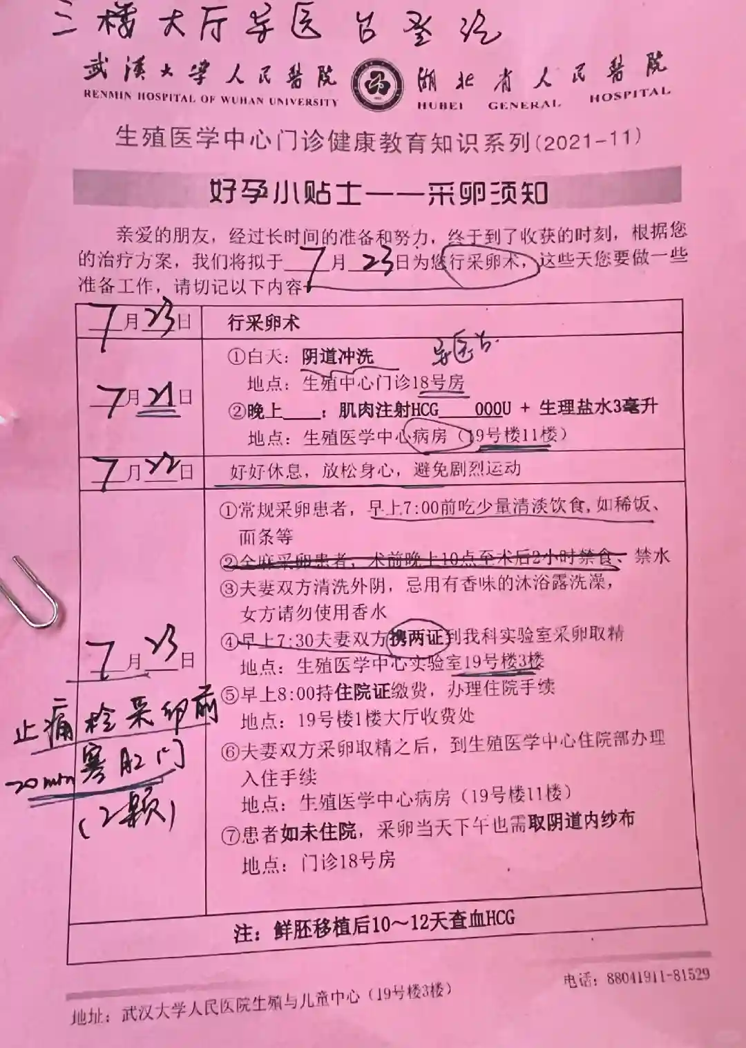 7月21日取卵前最后一次见医生,说我可以收针了,好突然,我以为还要一天呢