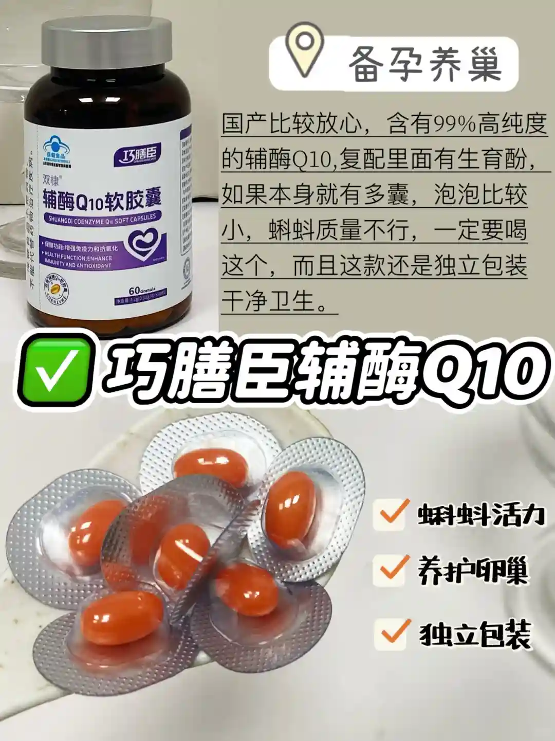 #女士备孕补剂 #内膜薄 #备孕攻略#生化#生化备孕 #卵子质量差 #养卵 #卵巢早衰 #生化妊娠 #备孕补剂 #大龄备孕 #高龄备孕#有效备孕#卵子质量差 #辅酶Q10的作用#夫妻备孕#久备不孕#内调#有效备孕#备孕攻略#巧膳臣#巧膳臣辅酶Q10
