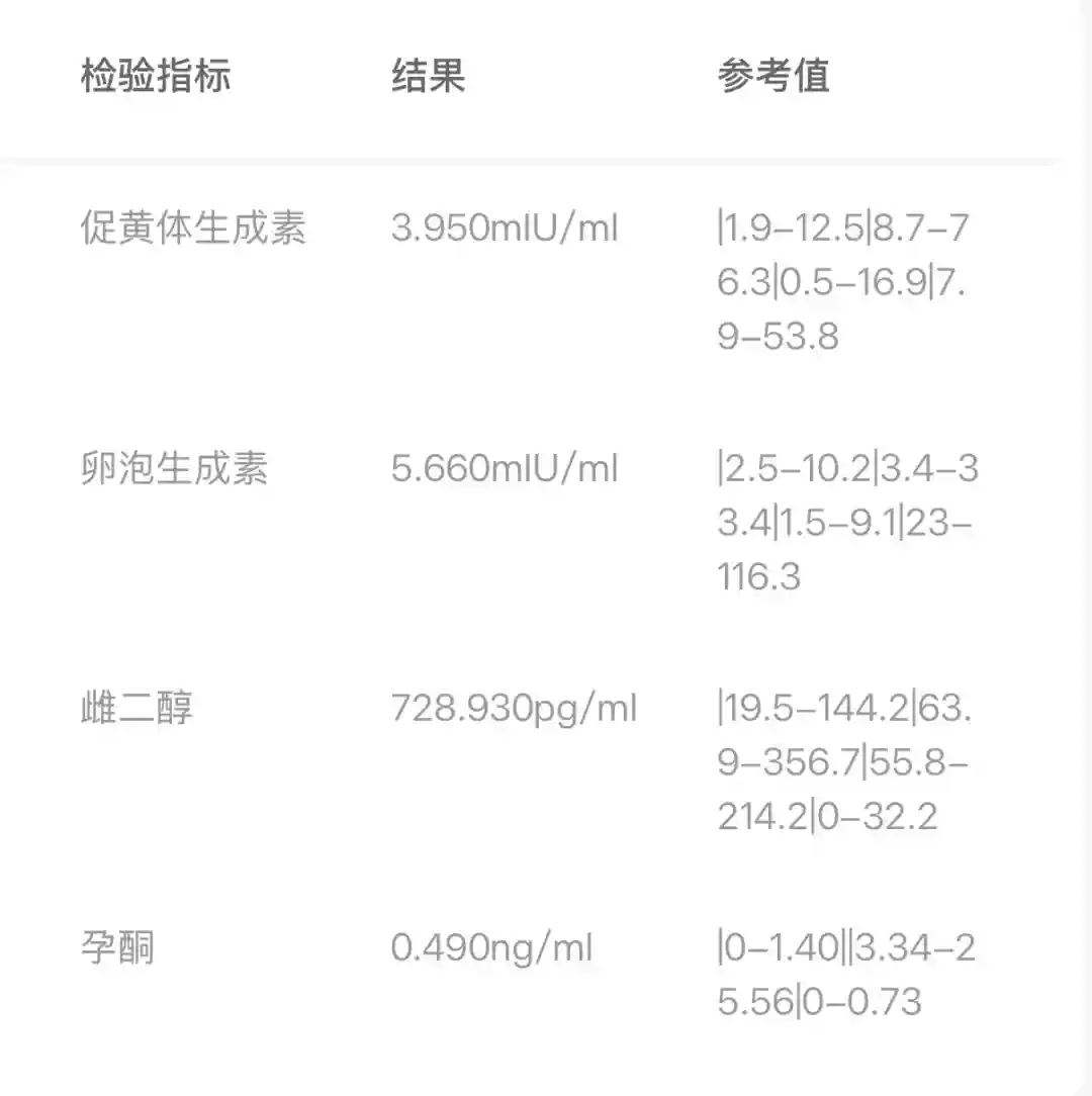 卵泡生成素:5.660mlU/ml 36元促黄体生成素:3.95mlU/ml 41.32元