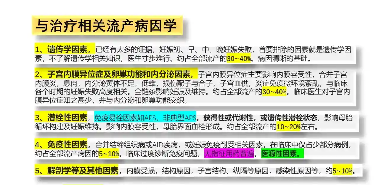 🈶潜栓性因素,免疫易栓因素如APS,非典型APS。获得性或代谢性,或遗传性潜栓状态影响母胎母胎界面血栓形成。约占全部流产的10~20%左右。