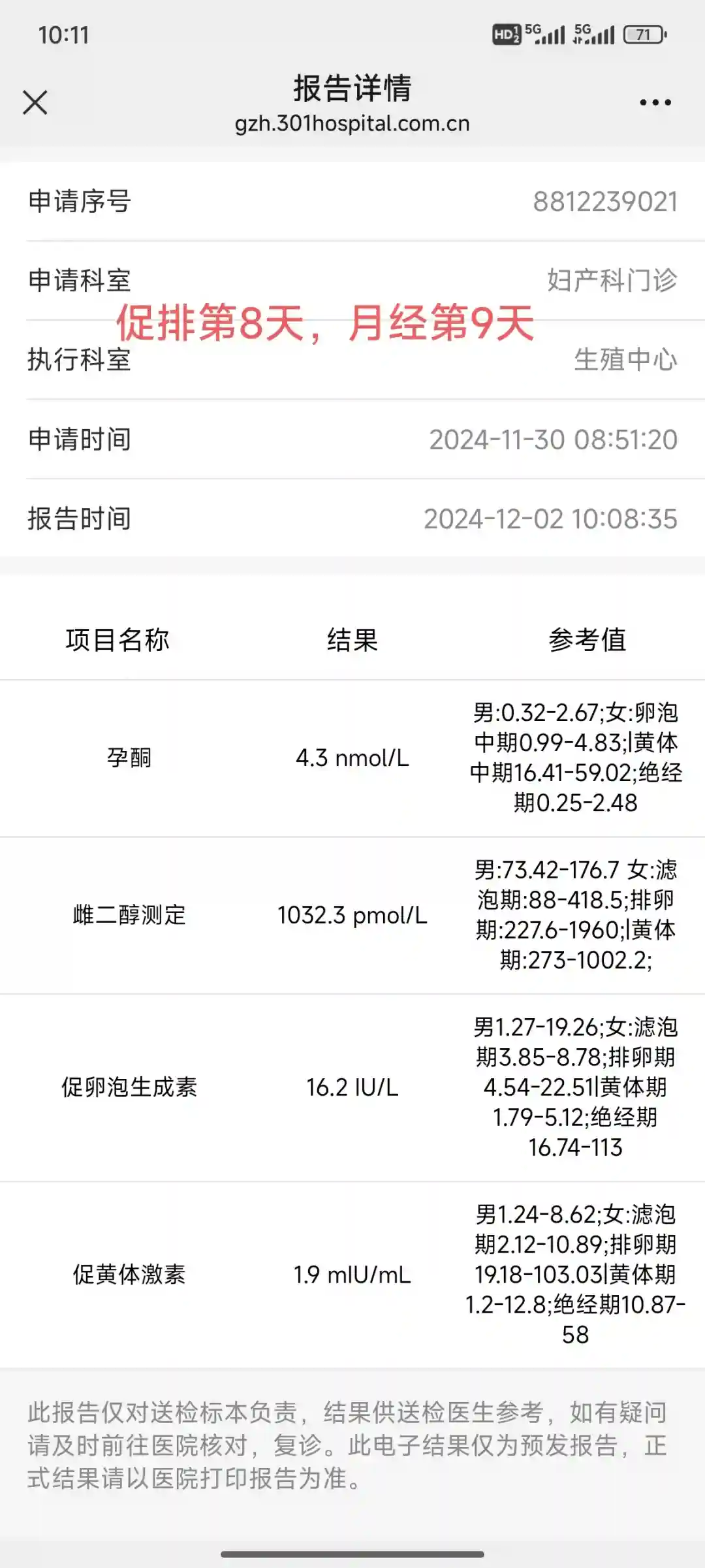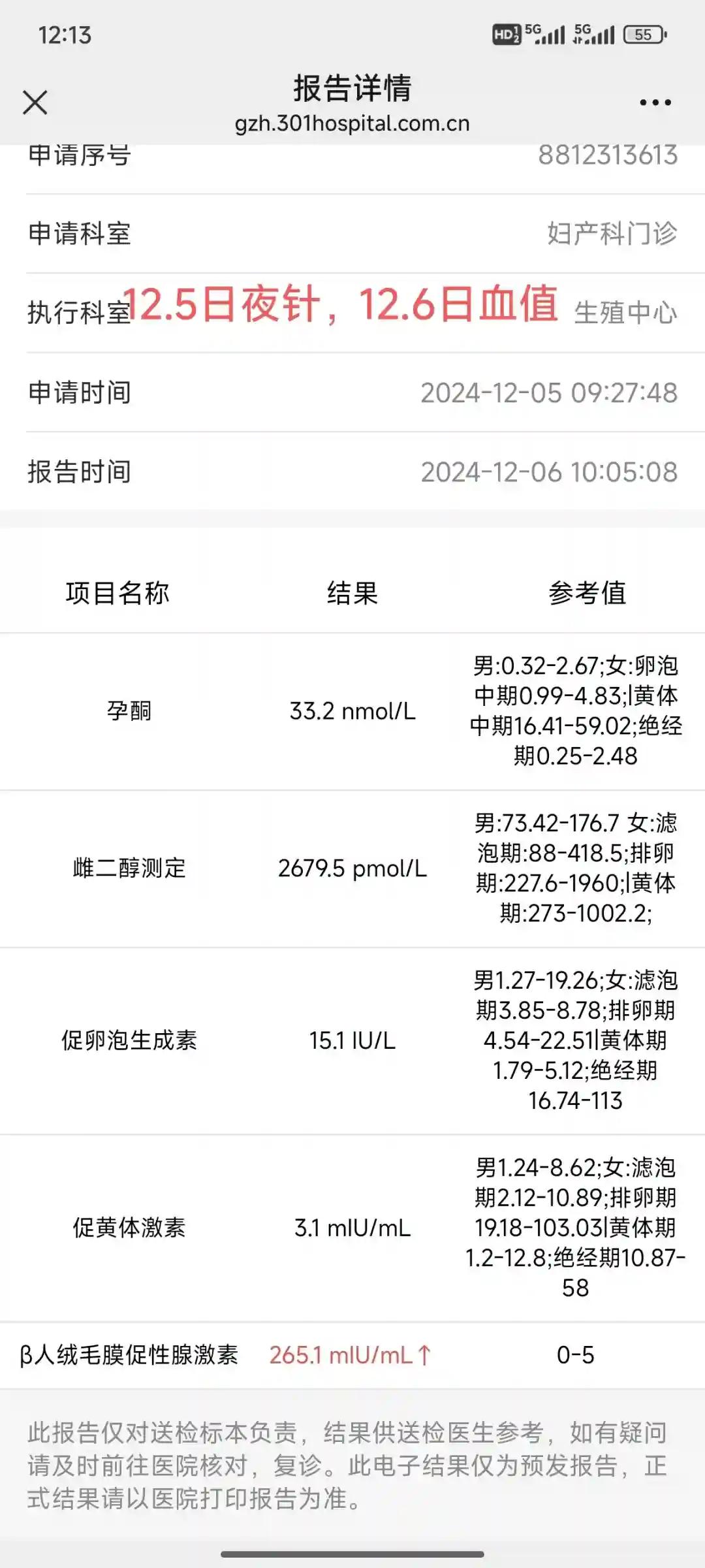 12月6日,早晨抽完血就去搬砖了,中午快12点了返回医院让护士看血值,小护士看都没看就说可以吃,我说我把单子给她,她说取卵那天再给,早知道为啥还要跑一趟,哎