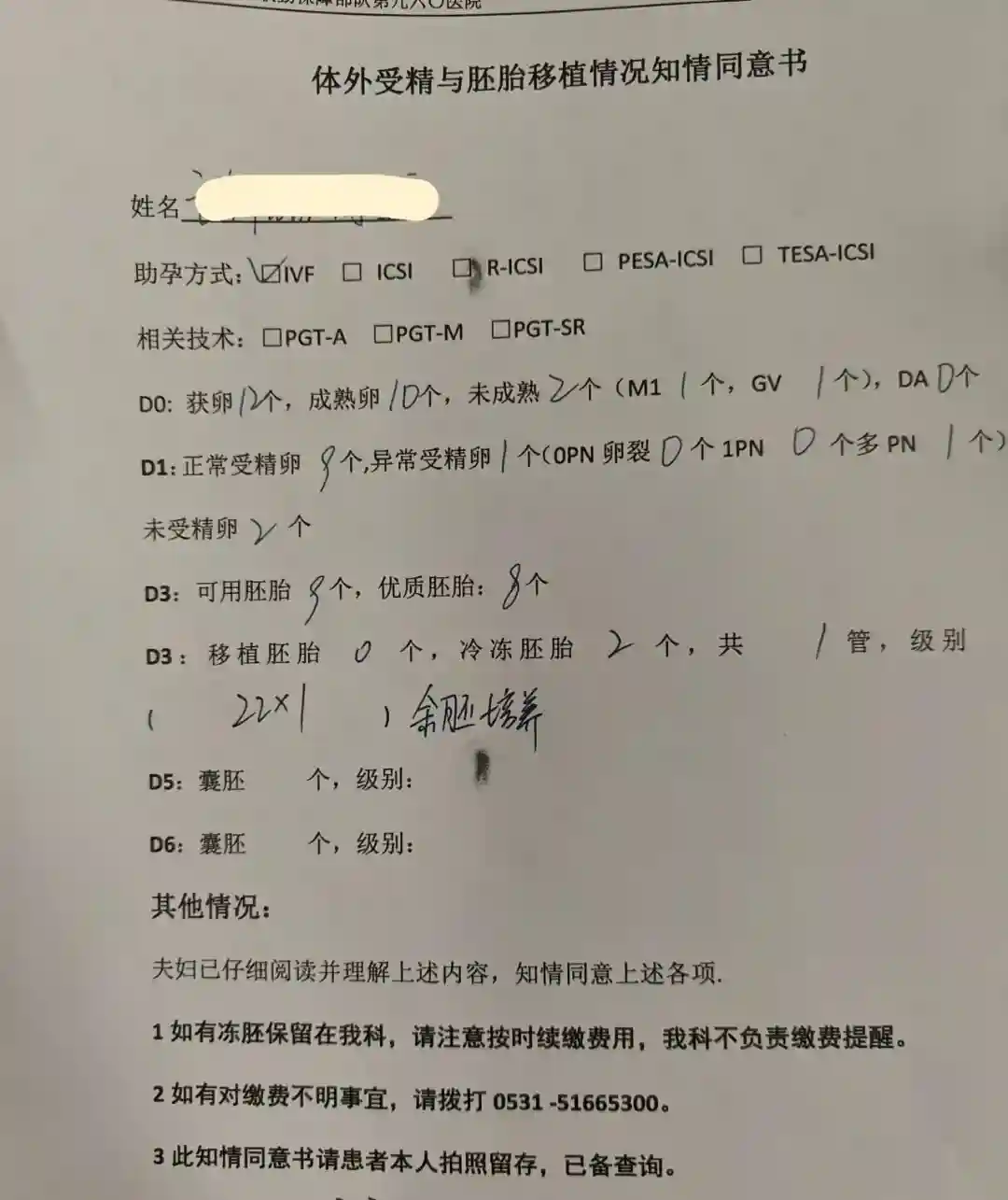取卵第三天腹水,鲜胚等级 济宁附属医院三代试管