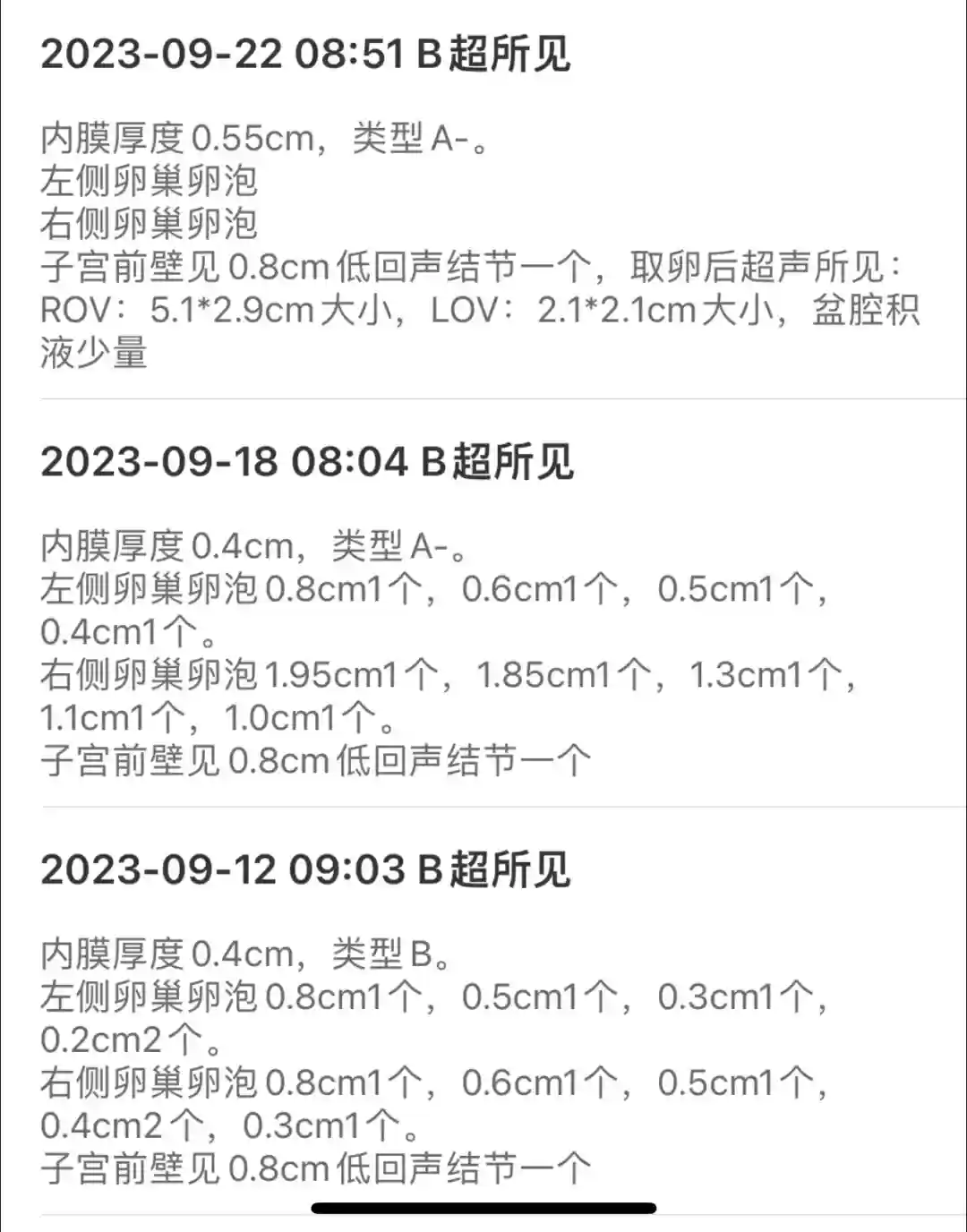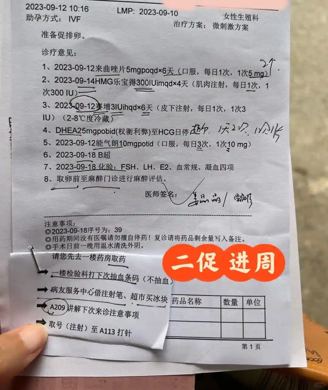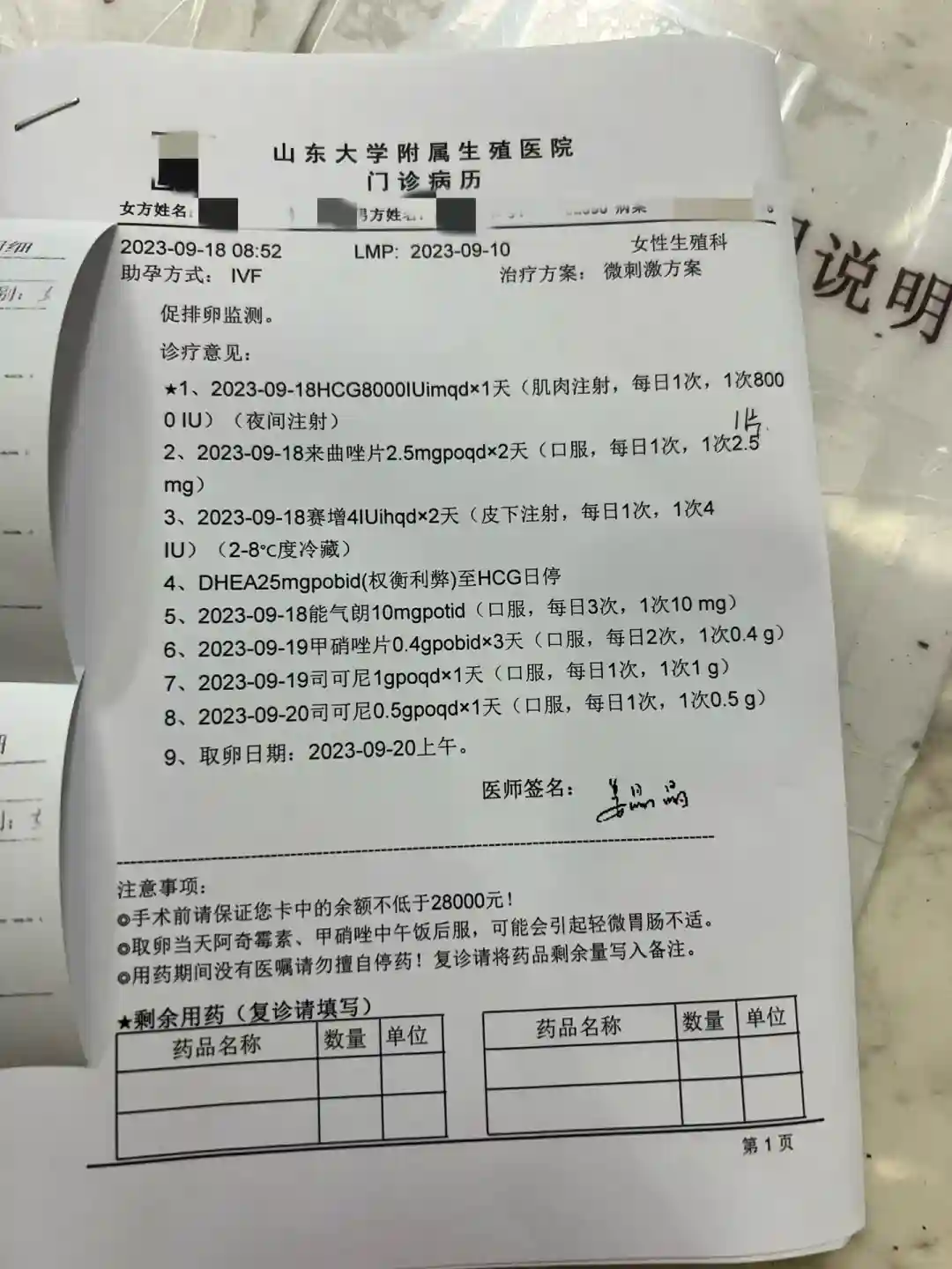 9.12月经第三天去山大,上次全程挂的刘红主任,这次想换个主任再试试,挂了姜晶晶主任。我和队友都有过期的化验报告,需要补化验,还要重新建档,所以需要双方同去,不然没办法进周。B超显示最大的卵泡到0.8了,姜主任给我用了微刺激方案,这个方案打针少、时间短。9.18第二次返院,最大的卵泡就1.95了,当天就夜针了。(也就一周的时间)