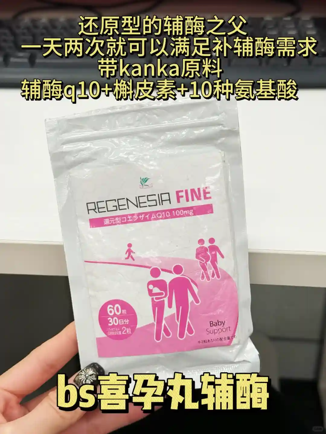 ③补剂:我备孕期在懂得营养补剂的重要性,一直在补充辅酶q10,吃的是bs喜孕丸,他家是专门研发这个的,是带kaneka原料的还原型辅酶,【辅酶Q10+槲皮素+10种氨基酸】三合一复配成分,成分科学配比,能高效吸收。一天两次,一次一粒,一袋可以吃一个月。主打高龄备孕,养泡护巢!比普通的辅酶更加安全高效,这是高龄备孕的关键。