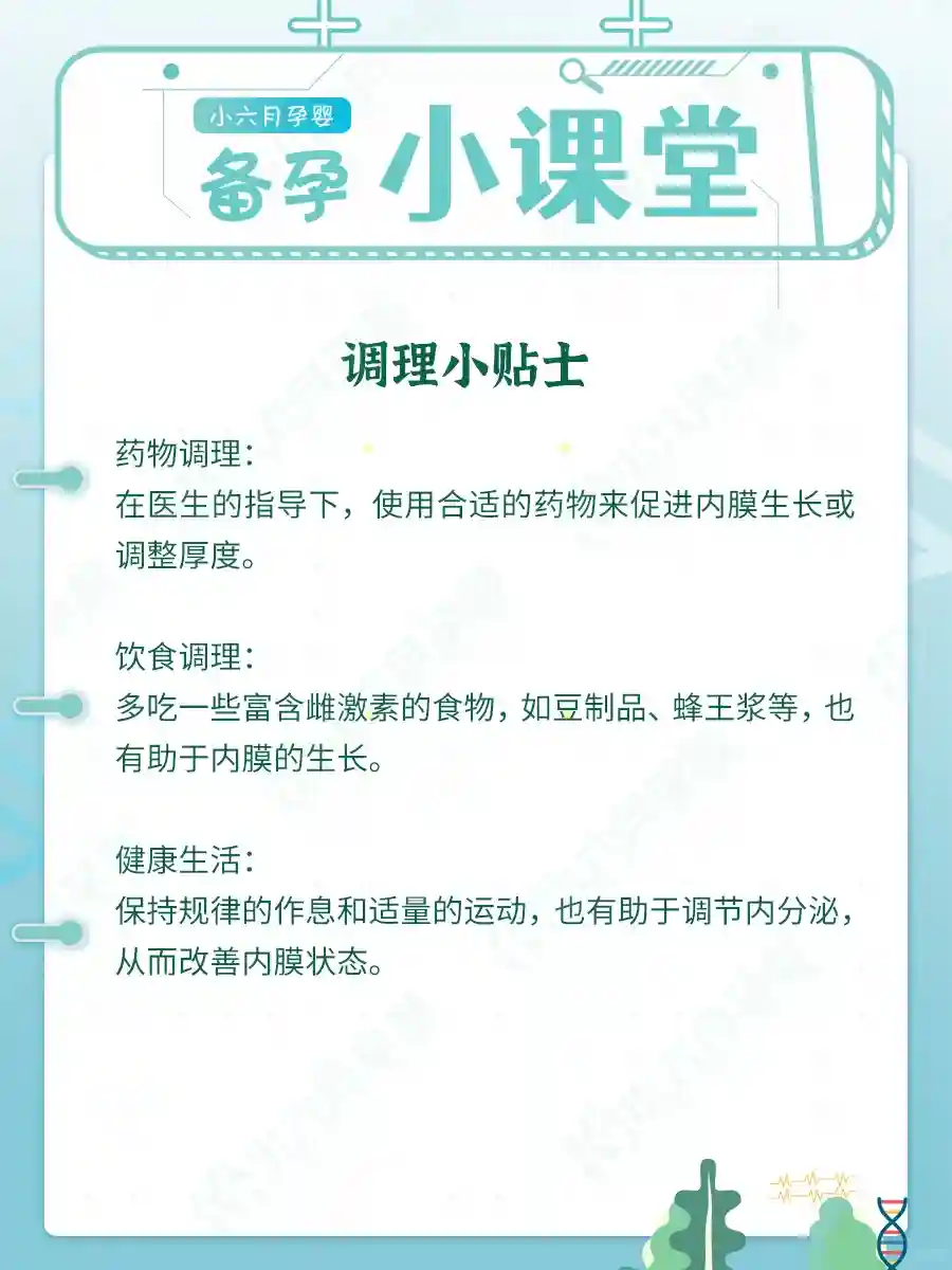 药物调理:在医生的指导下,使用合适的药物来促进内膜生长或调整厚度。