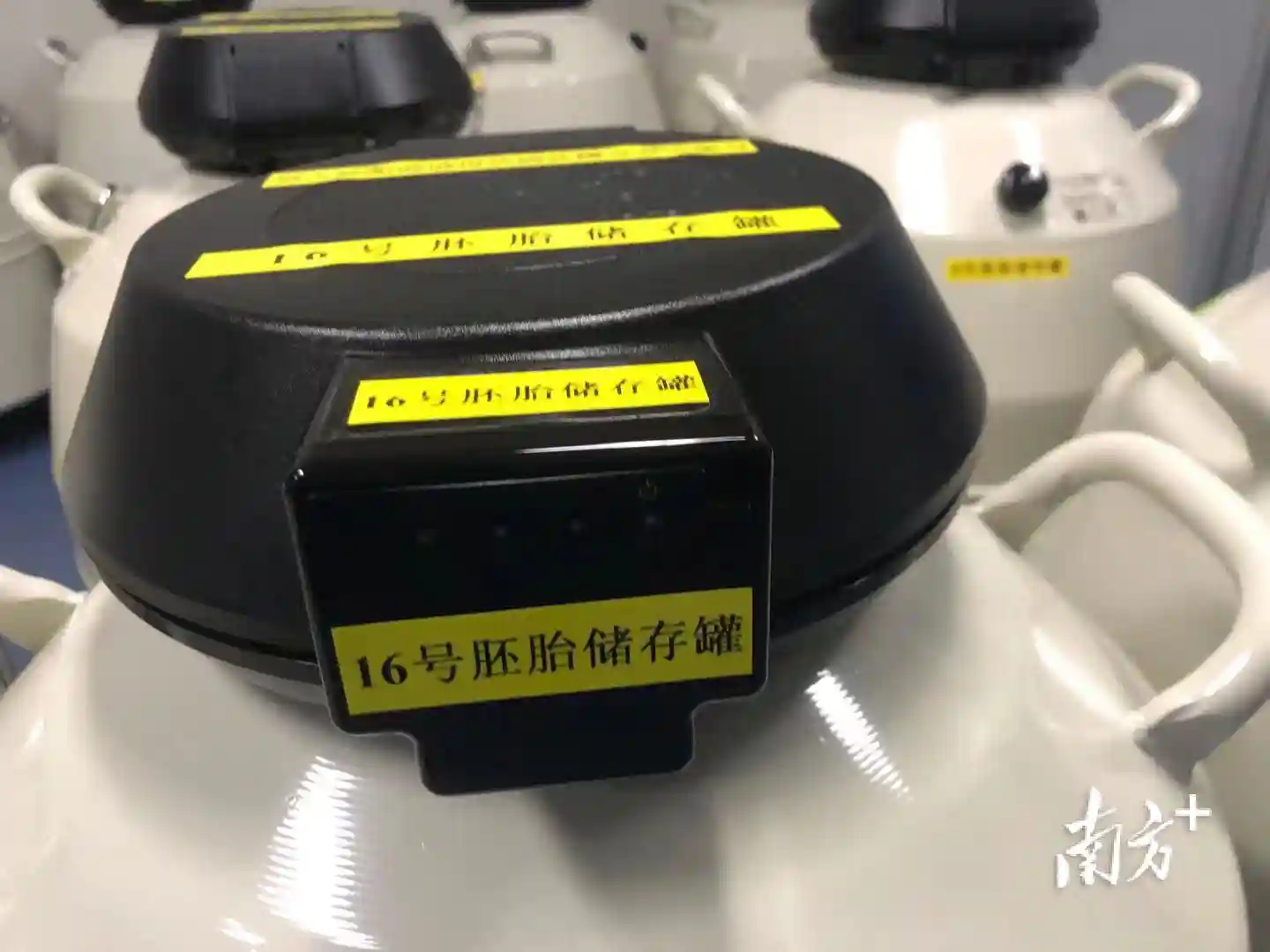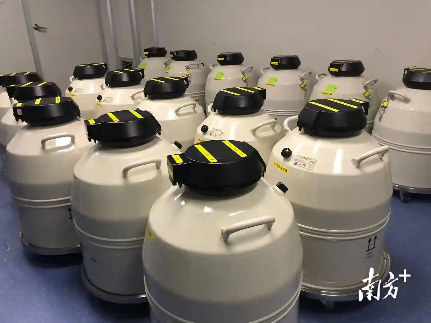 冷冻胚胎库内放着21个液氮罐,储存着约4万枚胚胎
