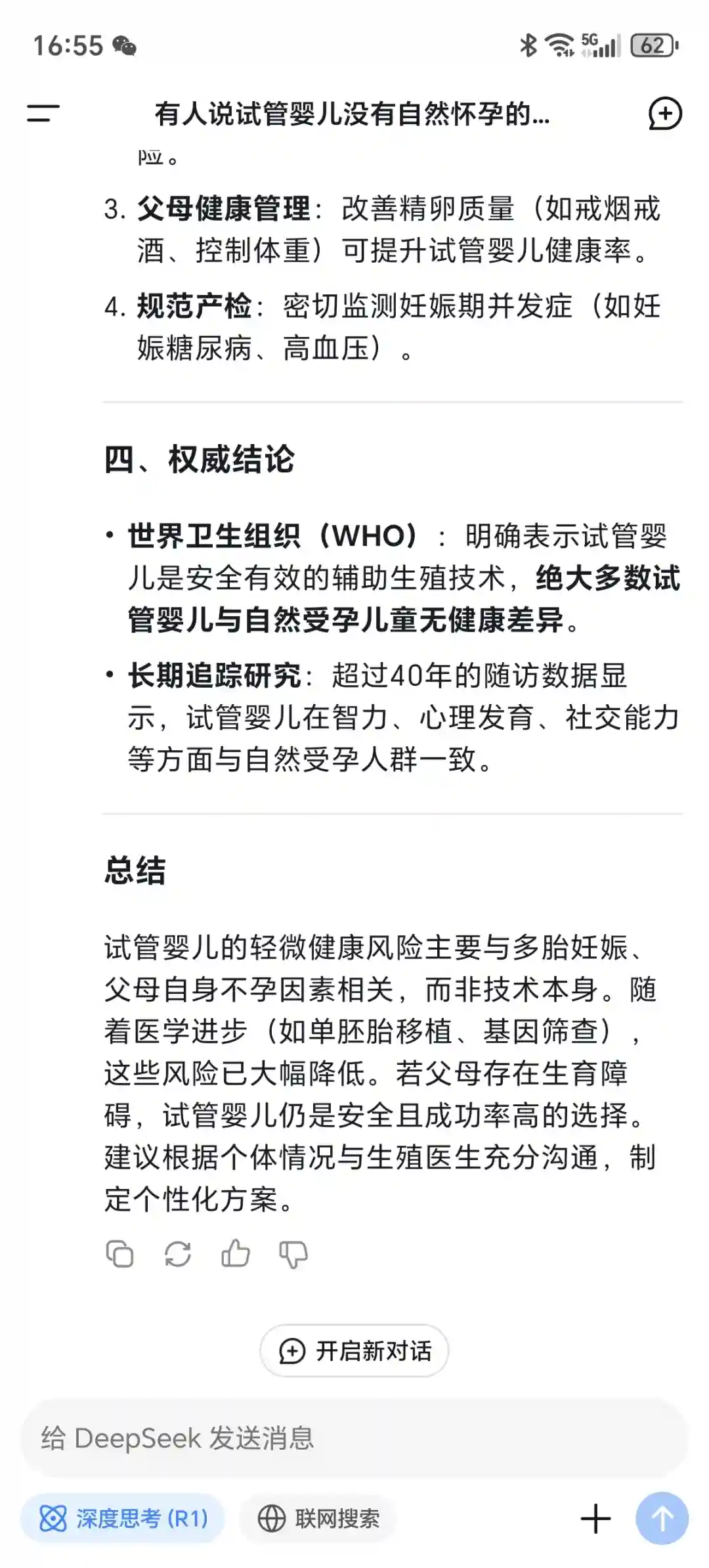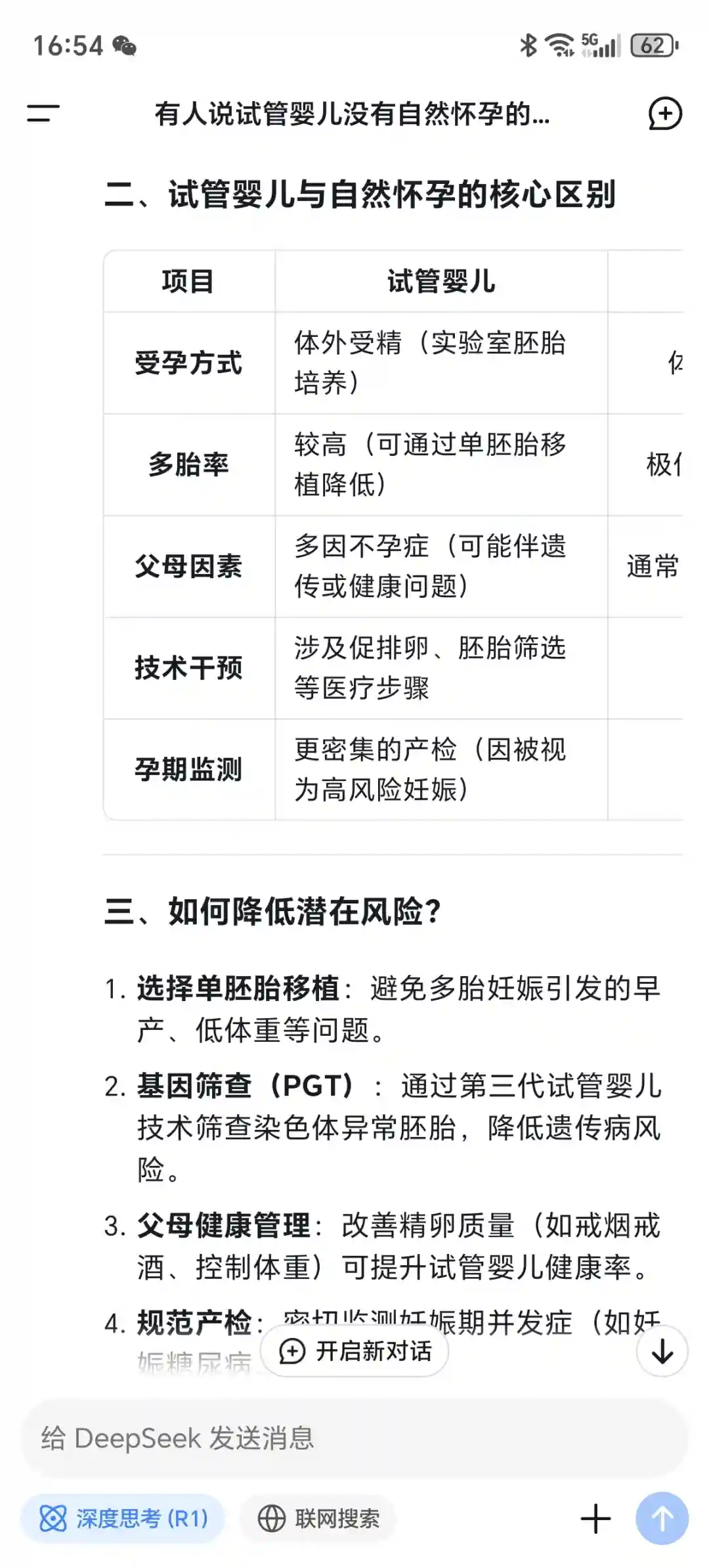今天当我问deepseek试管婴儿是不是没有自然怀孕的健康❓它给我答案是这样的❗