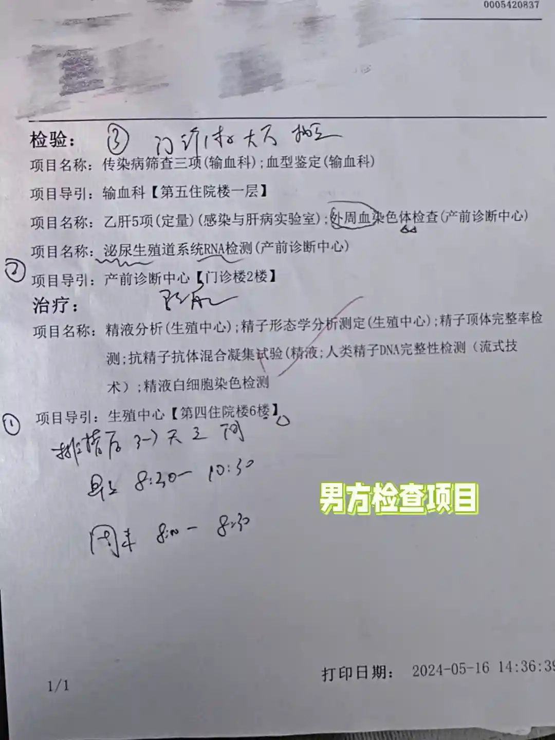 首先是男方的检查(周末可以做,早上空腹去):主要就是精液检测(生殖中心)、然后抽血验尿(门诊)。费用3484.4(自费不能医保),男生真的太简单了!主要就是有个DNA的报告要等7周,其他的都一个星期就可以拿到报告了。