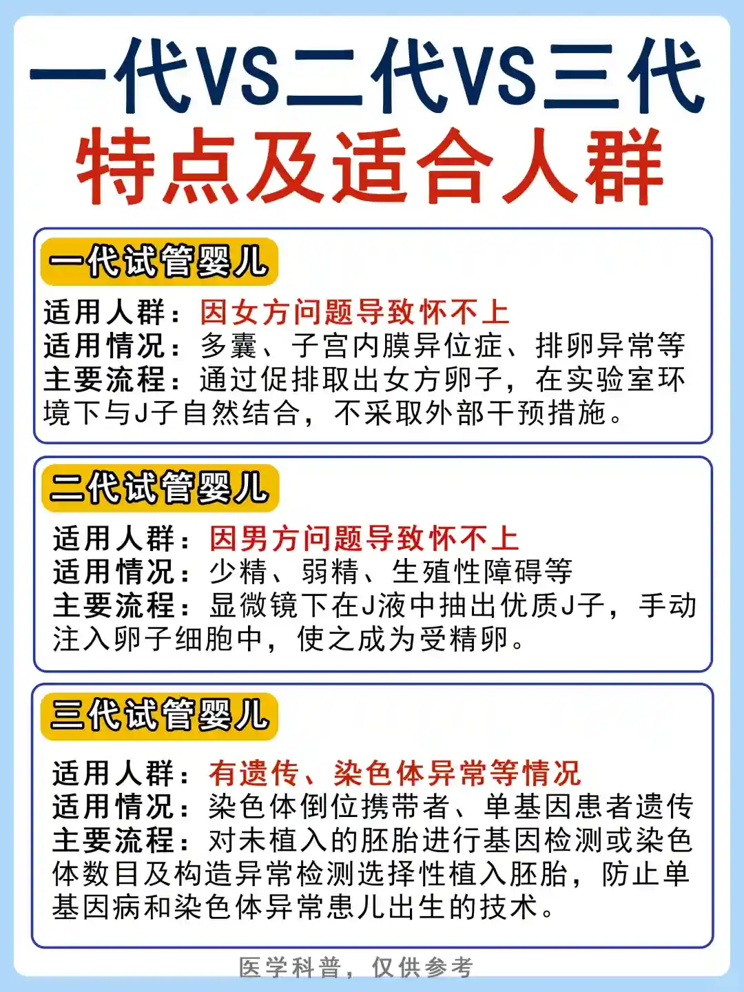 ✅一代试管:适合女方不孕问题