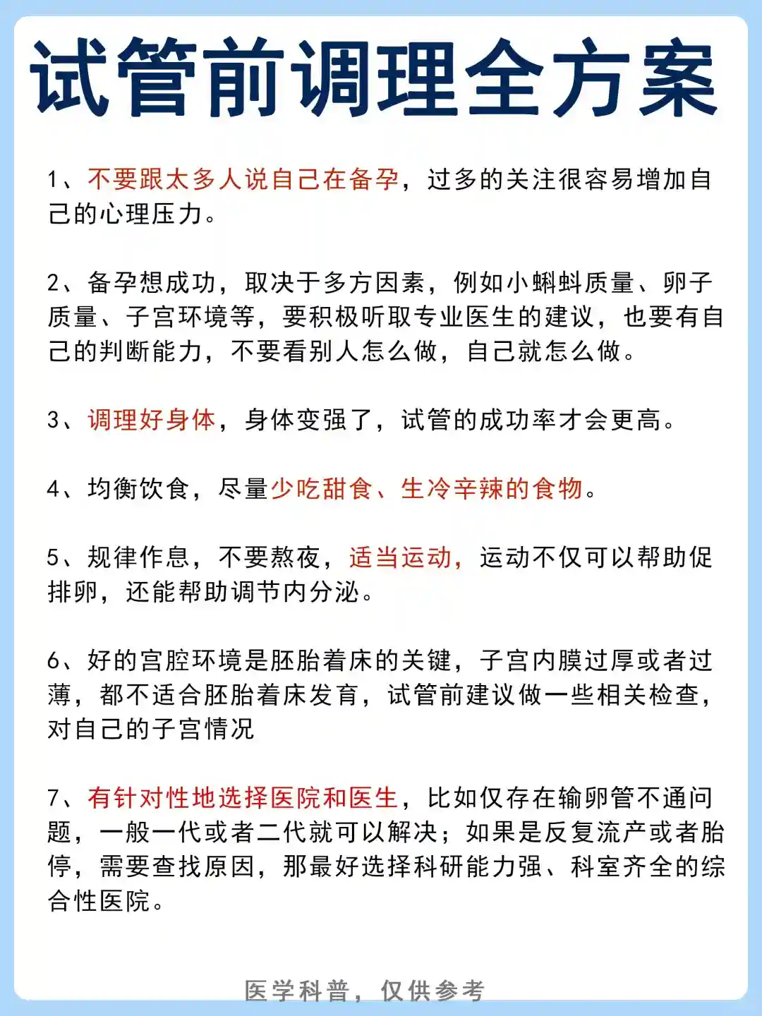 ①提前调理身体,身体变强,试管的成功率才更高