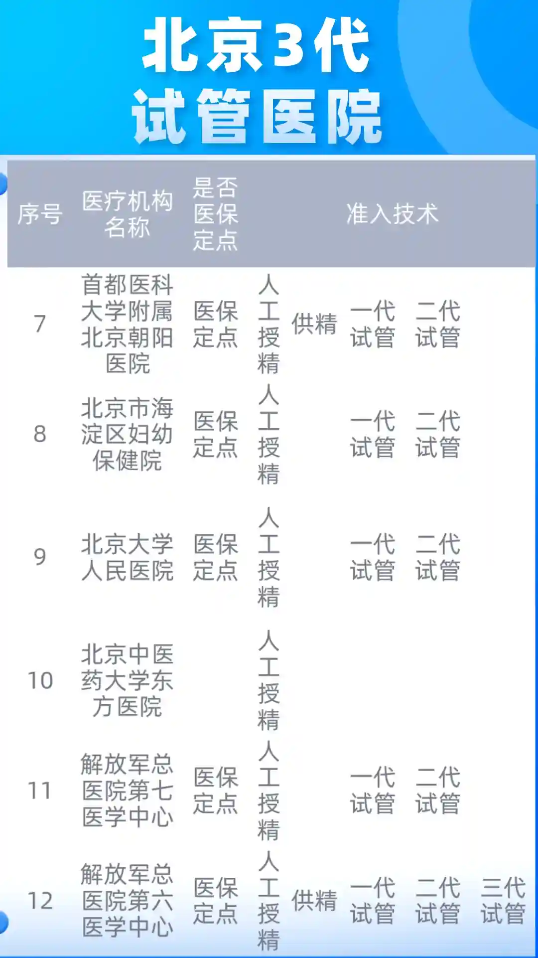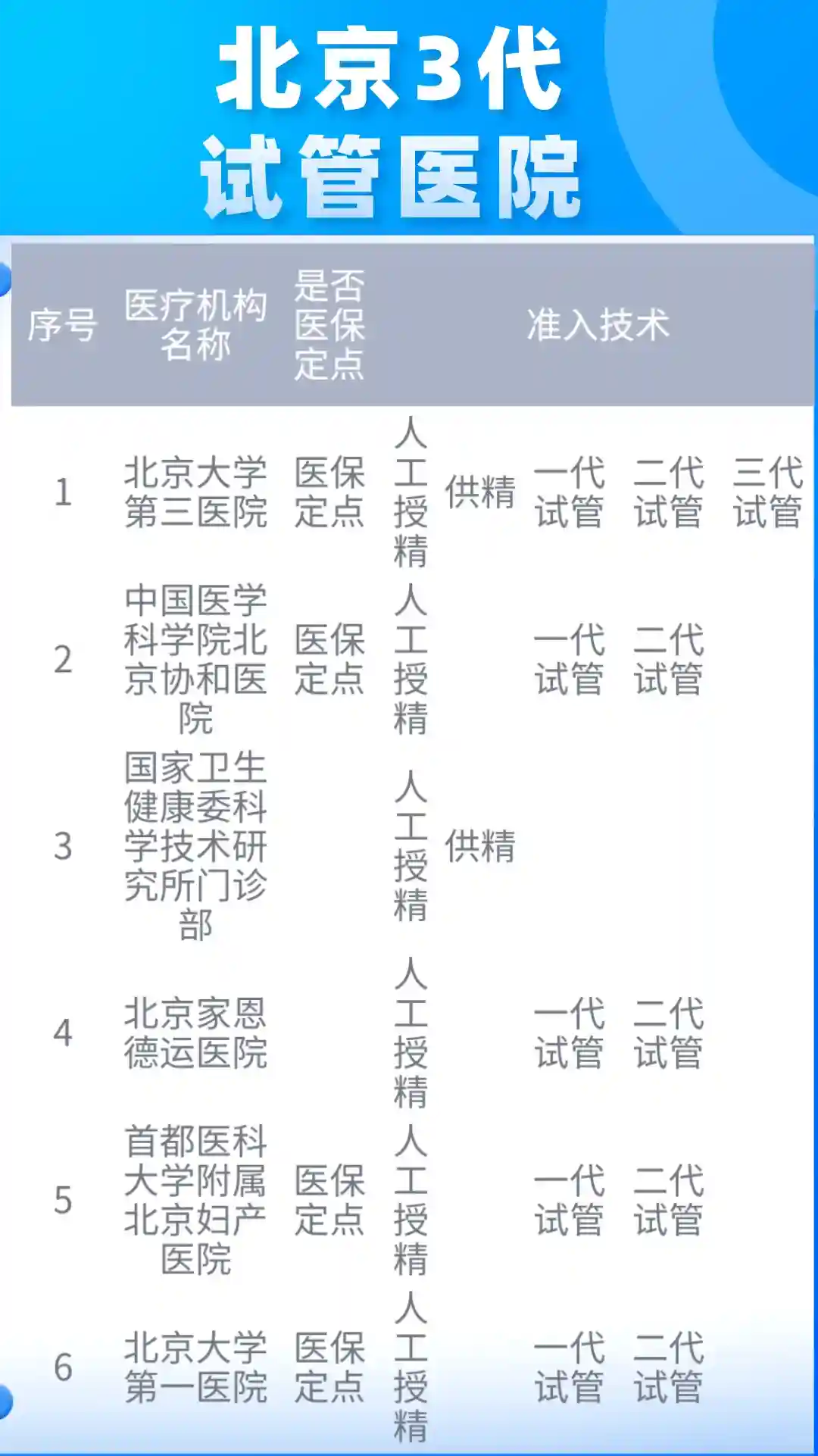 🏥🙆🏻♀️北京1代和2代试管资质的医院3家: