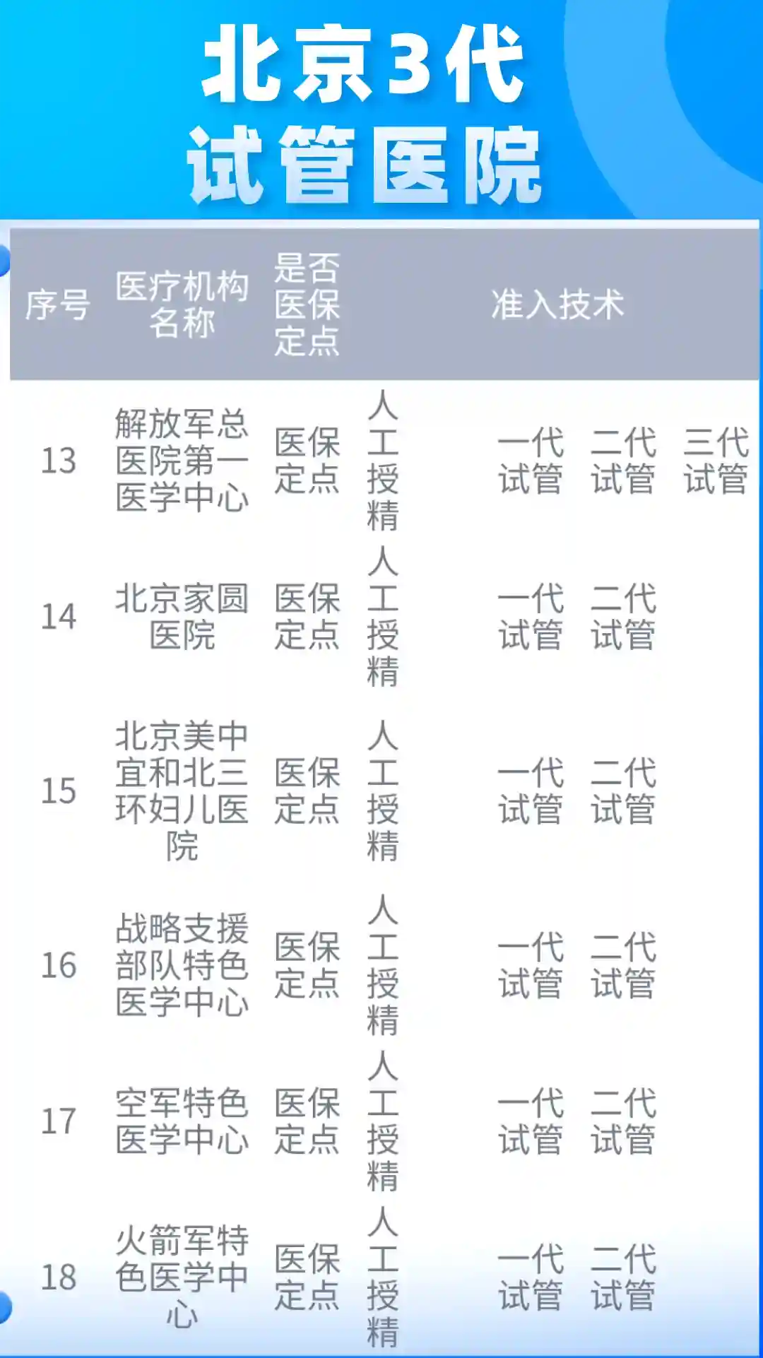 1️⃣北京18家医院,全面覆盖试管婴儿保险: