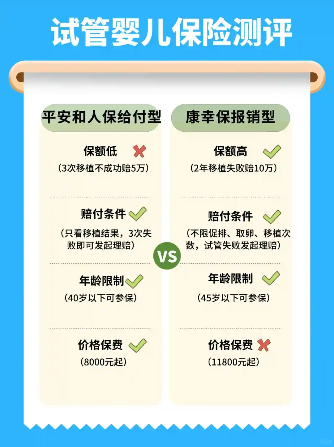 2️⃣试管保险套餐,指定医院,不限医保报销,不成功最高退款68800元。