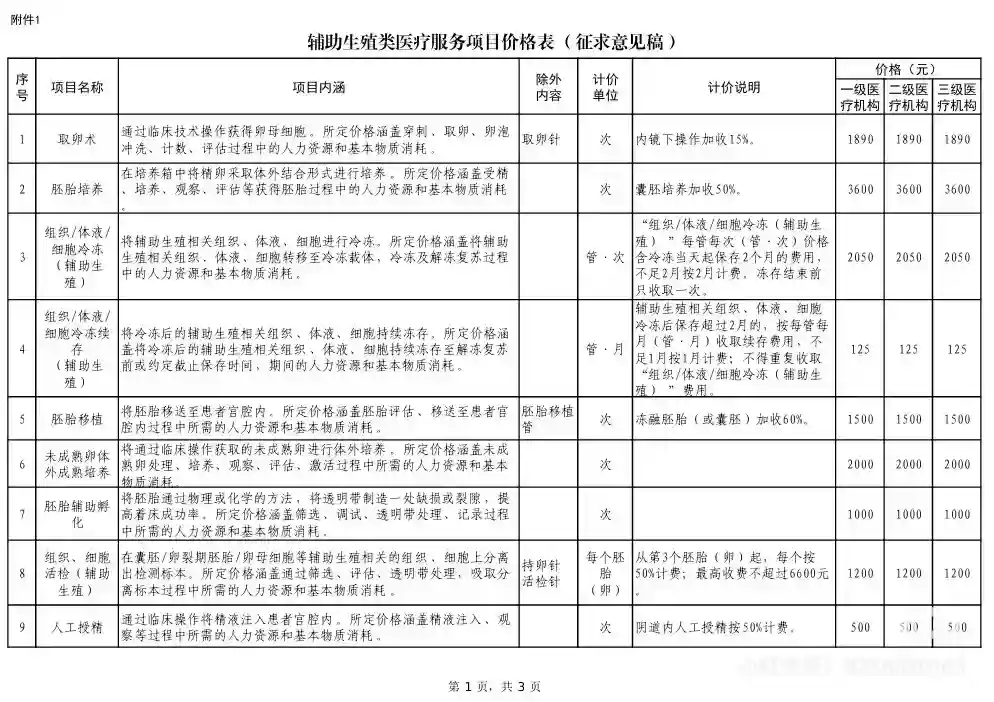 2,图2是征求意见稿,不出意外就按这个,冷冻费用涨了不少,移植也涨了(不敢乱说话,之前费用进群看吧)