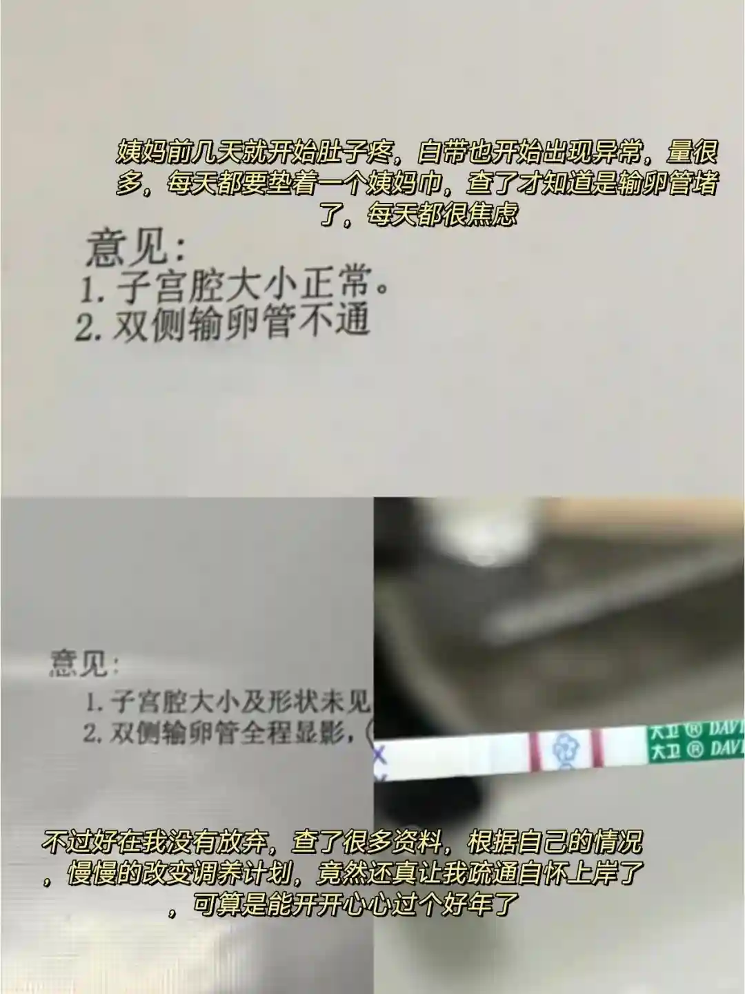 刚开始我姨妈突然推迟了半个月😨,想着以前也有这种情况就没咋在意,觉得下次姨妈快来的时候注意下保暖就行,后面姨妈倒是准了,但是姨妈前几天就开始肚子疼😣,白带也开始出现异常,量很多,每天都要垫着一个姨妈巾,查了才知道是输卵管堵了,每天都很焦虑😫