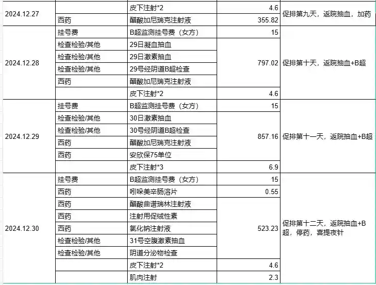 图三、图四是整个促排期间的费用,算了一下,一共是💰8259.21。#三代试管