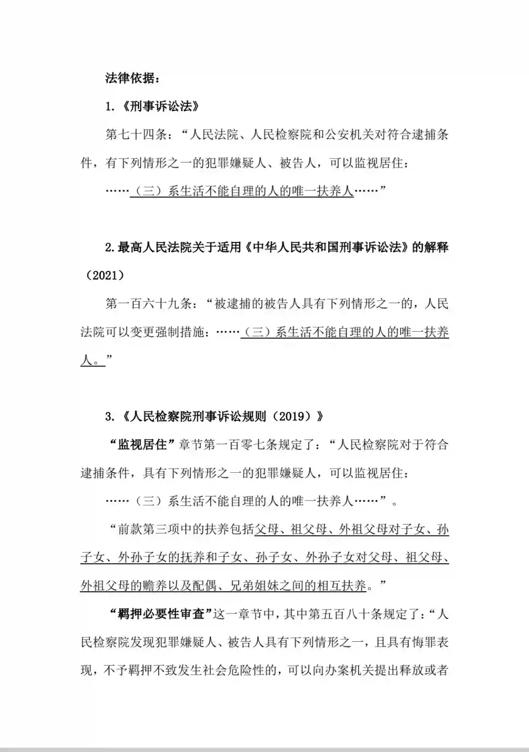 附“唯一扶养人”和有权申请取保的法律依据: