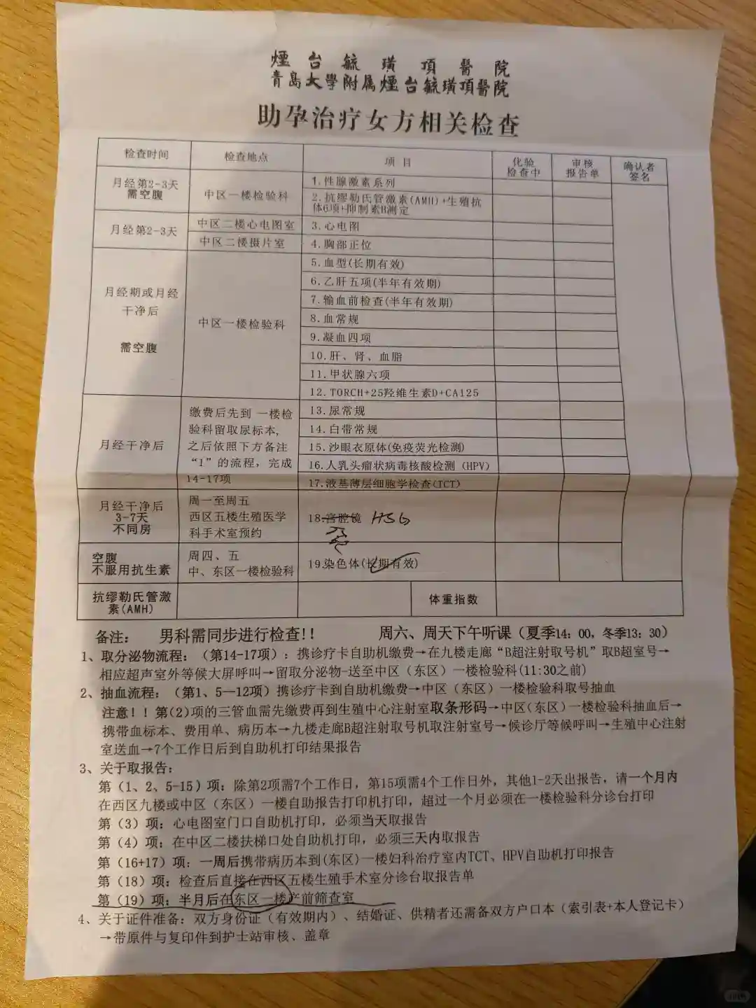 【图一图二】就是男女双方各自要做的检查,男士相对简单,女生的检查至少要分两三次做,因为涉及生理期和生理期后做。大夫会很清楚的告诉你什么时间做什么。我应该是2023.11月初开始就诊的,等到所有检查报告出结果,2023.12.19建档。然后再等我排卵,直到2024.1.2和1.3分别做了人工受精。