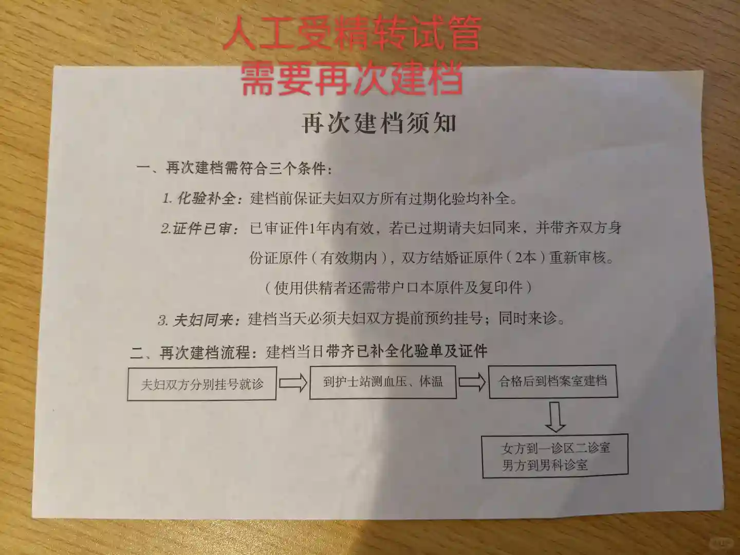 【随身携带材料】我是每次就诊的时候,把之前的所有检查报告、缴费单(就诊导引单,上面有项目费用和就诊科室的,非常重要,别丢了)。包括初次建档完成后,再来医院的时候,我都把那些检查报告复印件带着,以备不时之需。我今天来准备人工受精转试管的时候,需要再次建档,我就忘了带结婚证原件。不过好在初次建档就在上月,护士站沟通了一下,就顺利去档案室再次建档了。【想说的话】这里就是记录我备孕的流水账,分享出来供有需求的姐妹们参考,如果能帮到别人,对我来说也是功德一件。但每个人的身体状况不一样,大家一定要理性看待,听大夫的为主,别太担忧。我做完人工受精之后,也有怀上的各种感觉症状,例假也推迟了两天,心里是很期待能顺利怀上的。昨晚来了例假,虽然有小失落,但是放宽心,现在医学这么发达,想要一个宝宝还是有很多机会哒!#备孕日记 #科学备孕
