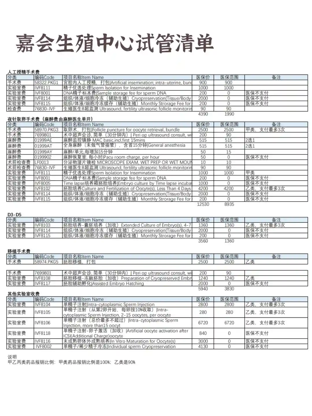 ✅可报销项目:涵盖取卵术、胚胎培养、胚胎培养(囊胚培养)、胚胎移植、胚胎移植 (冻融胚胎)、组织细胞活检、人工授精、人工授精(阴道宫颈内人工授精)、精子优选处理、取精术、取精术(显微镜下操作)、单精子注射等 12 项。
