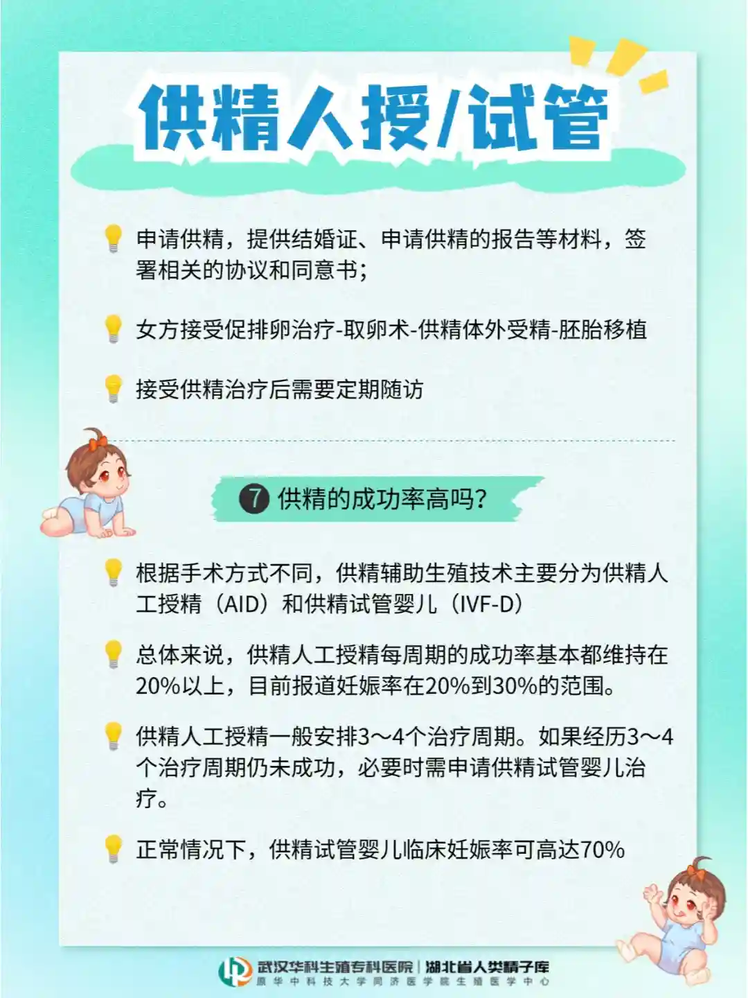 湖北本地的家庭不用东奔西跑,在武汉就可以进行供精试管婴儿助孕哦~
