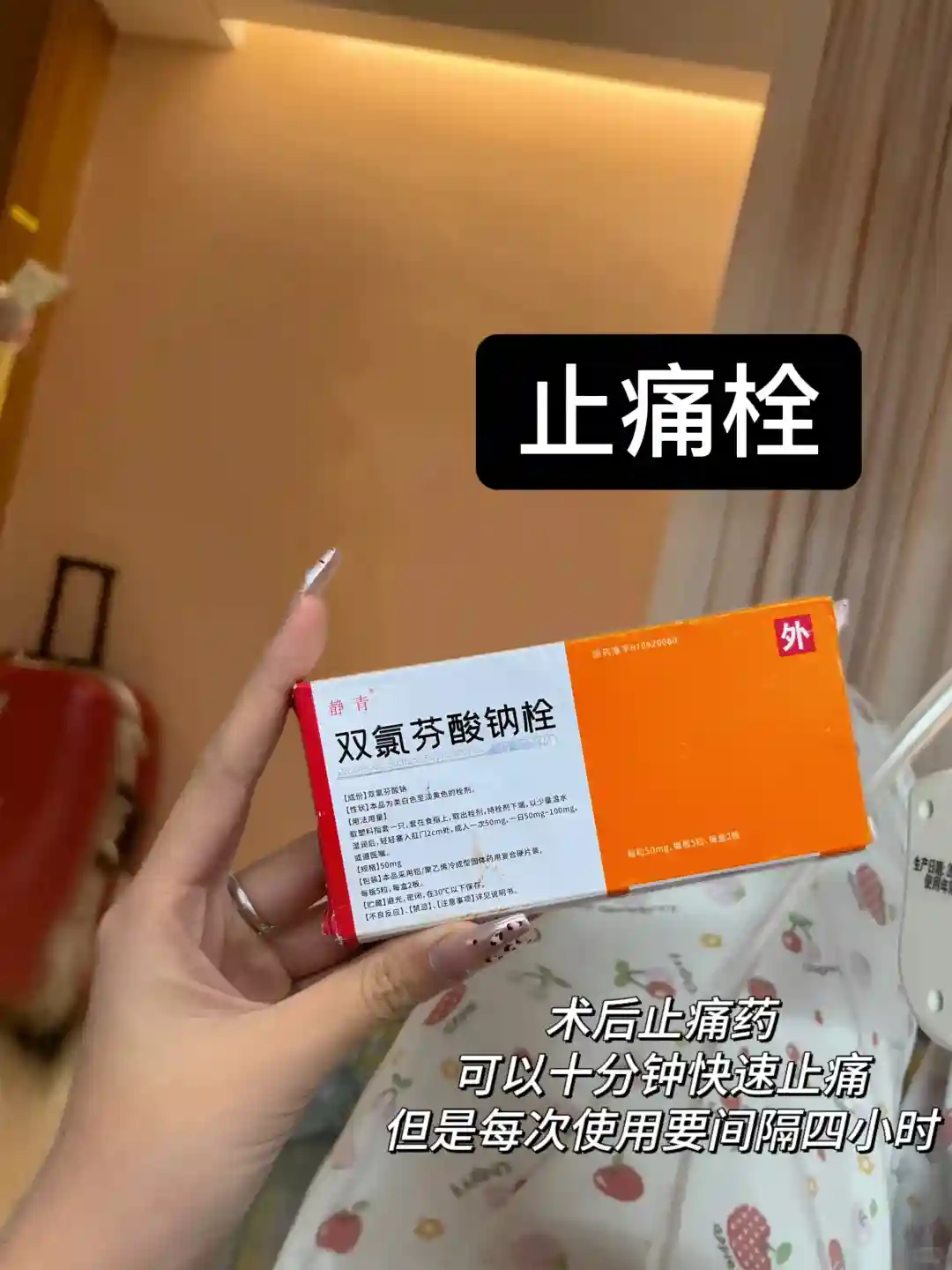 第二天就会要求下床,塞了止痛栓疼痛感可以减少一大半的痛苦,记得下床之前塞止痛栓,但是每次使用要间隔四小时