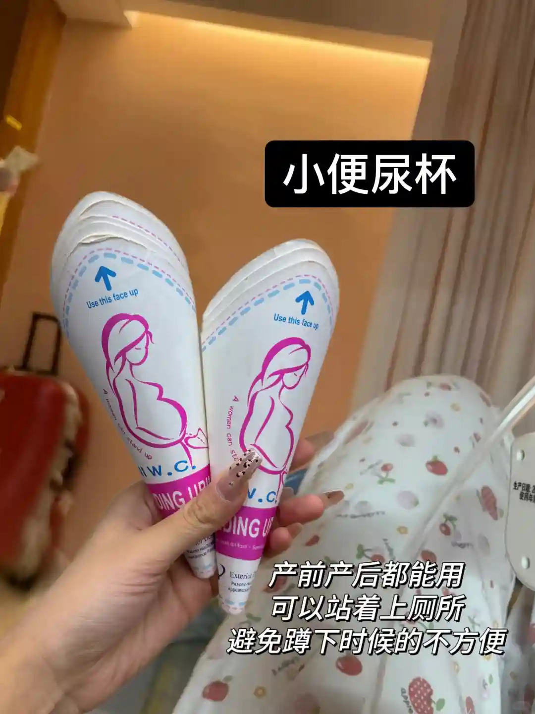剖后第二天拔完尿管会自主排尿,用小便尿杯可以站着嘘嘘,可以防止下蹲时对伤口造成的二次伤害,真的很方便,强推。