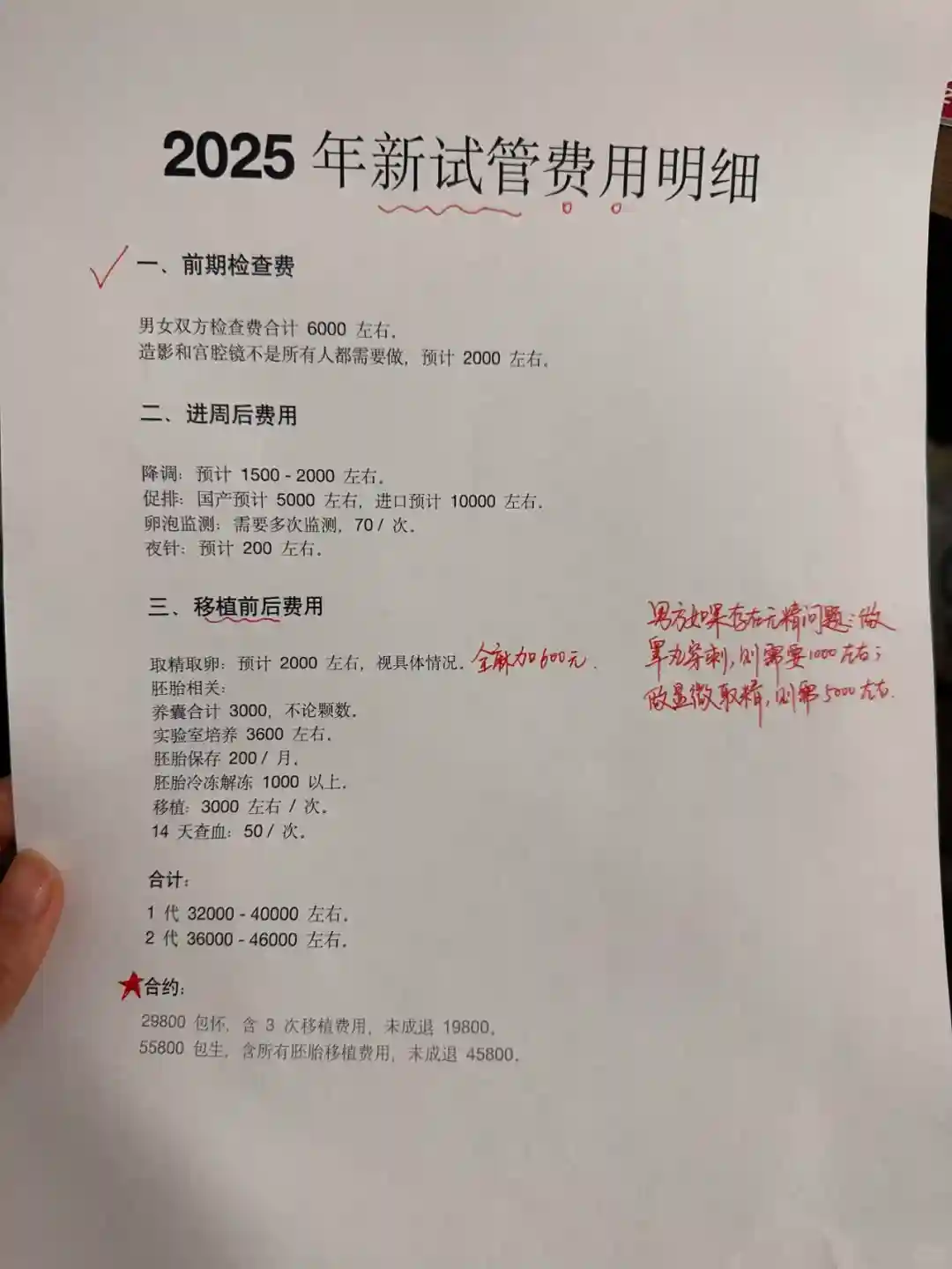 今天,为你们整理出2025年超全试管费用清单+试管全流程攻略,从试管检查到胚胎移植,一篇搞定所有疑问!✨