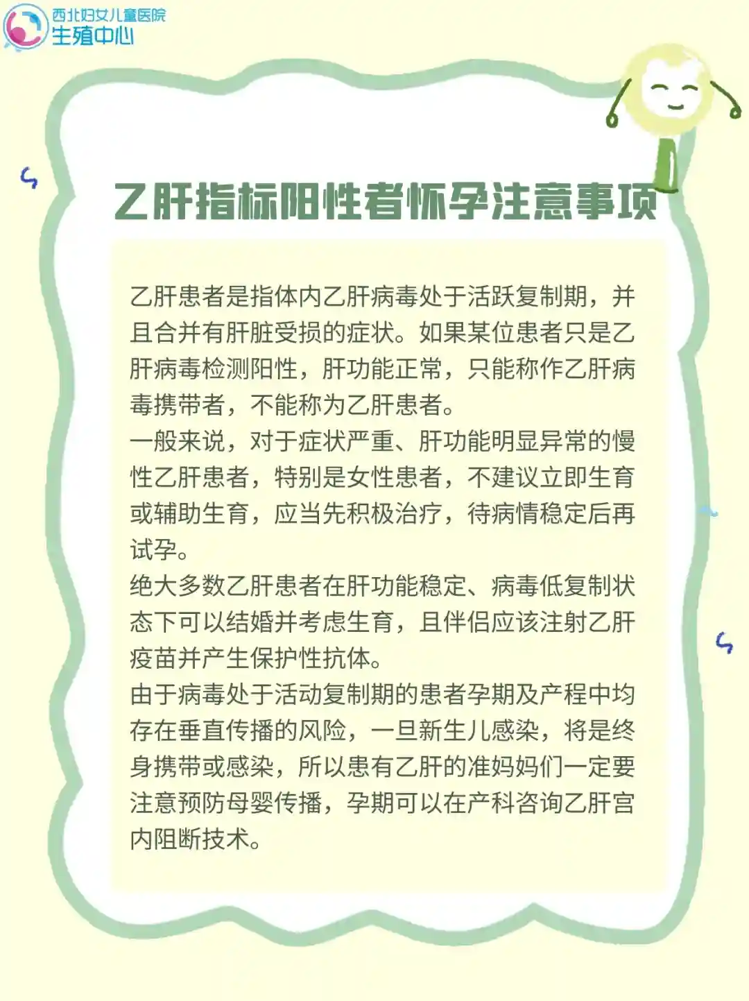 尽可能在病毒低复制状态、肝功能控制于正常水平时考虑辅助生殖治疗及妊娠。