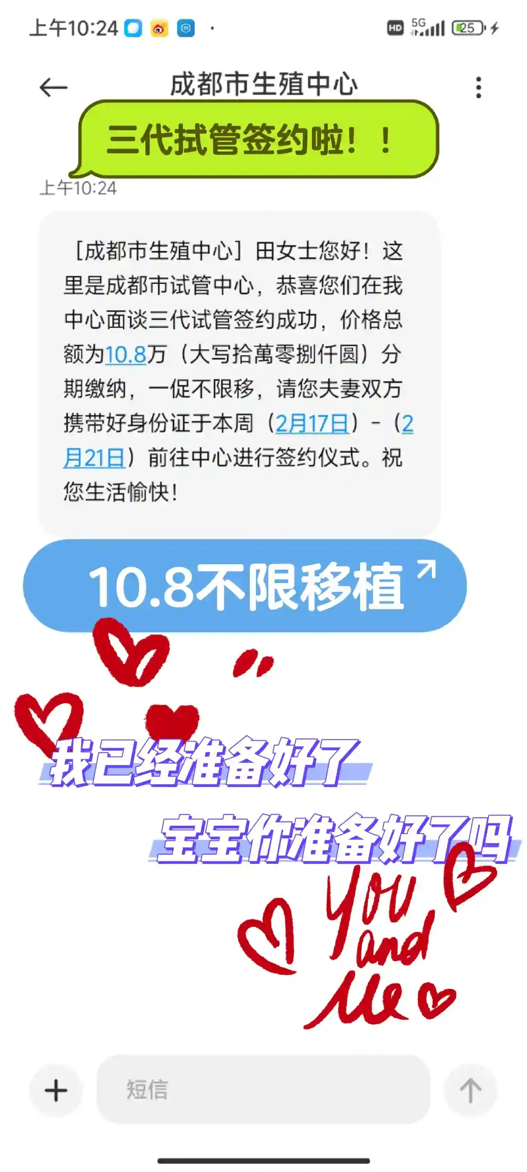 签约完成后,就要正式进入式管周期了。接下来我会先进行身体调理,按照医生的嘱咐按时吃药、运动、保持良好的作息。预计下个月就开始进周,打促排卵针、取卵取精、胚胎培养、移植……每一步都充满挑战,但我相信只要我们坚持下去,一定能迎来属于我们的小天使👼👩❤️👨在这里也想对所有正在备孕或者准备做式管的姐妹们说,不要害怕,不要放弃,每一个小生命来到这个世界都需要一些时间和努力。我们要做的就是保持积极的心态,相信科学,相信自己!如果你有任何关于三代式管的问题,都欢迎在评论区留言,大家一起交流,互相打气💪#三代试管 #试管签约 #试管之路 #接好孕