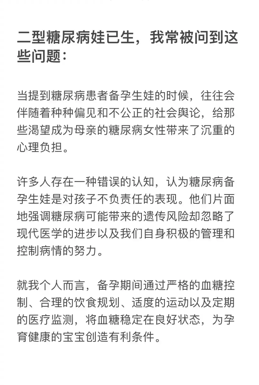 许多人存在一种错误的认知,认为糖尿病备孕生娃是对孩子不负责任的表现。他们片面地强调糖尿病可能带来的遗传风险,却忽略了现代医学的进步以及我们自身积极的管理和控制病情的努力。