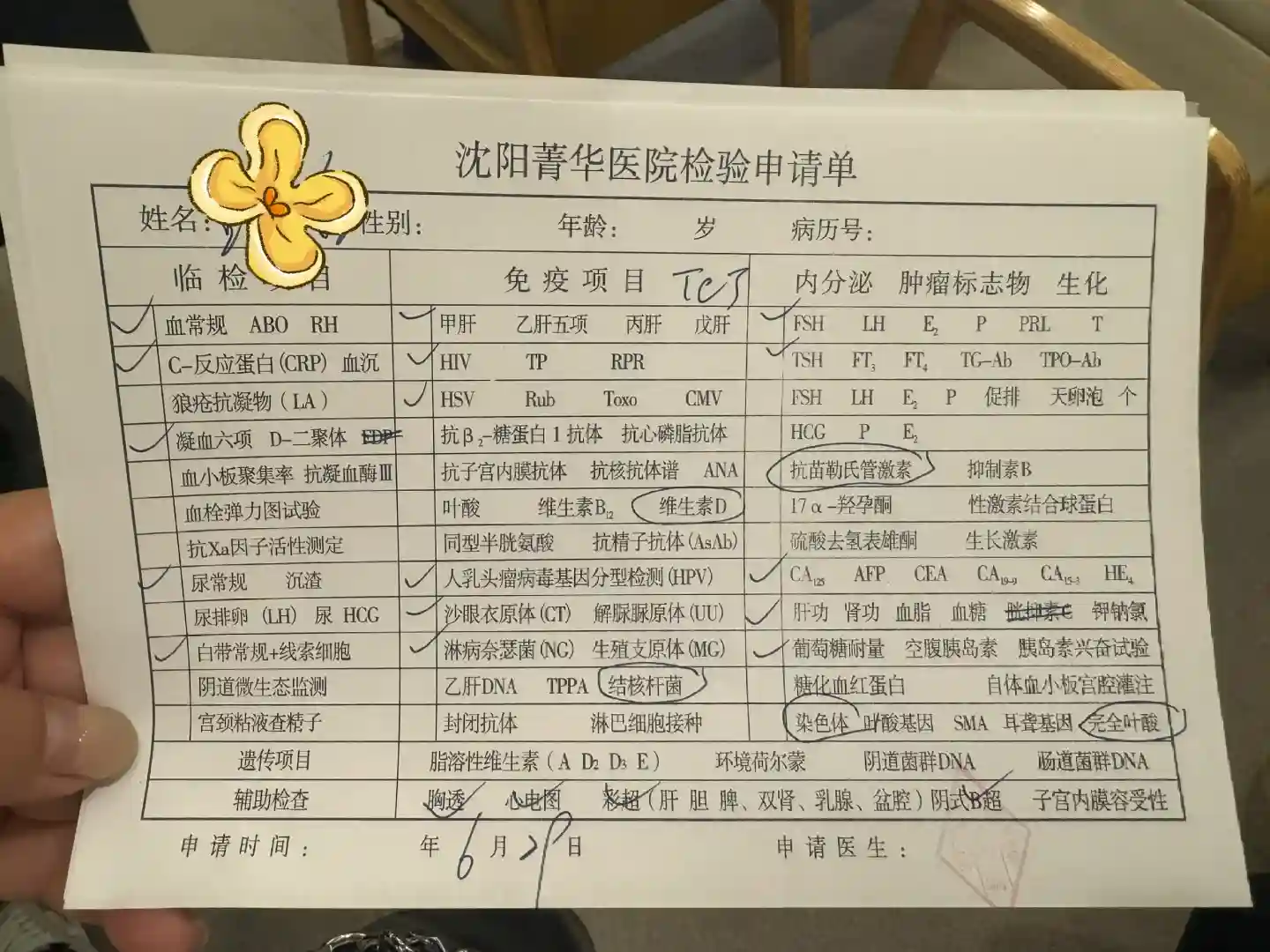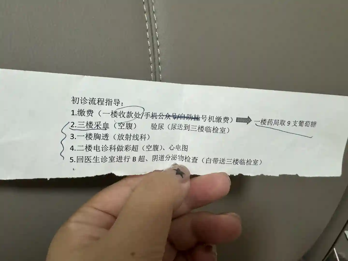 跟医生说你是初诊,然后进行简单的情况了解,了解之后会给你开所需要的检查项目(图一)。