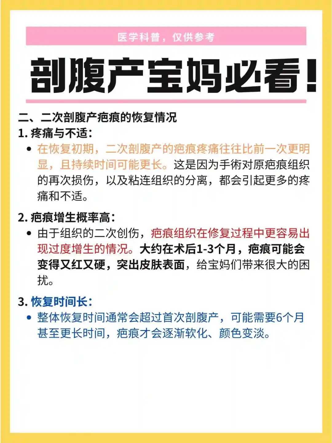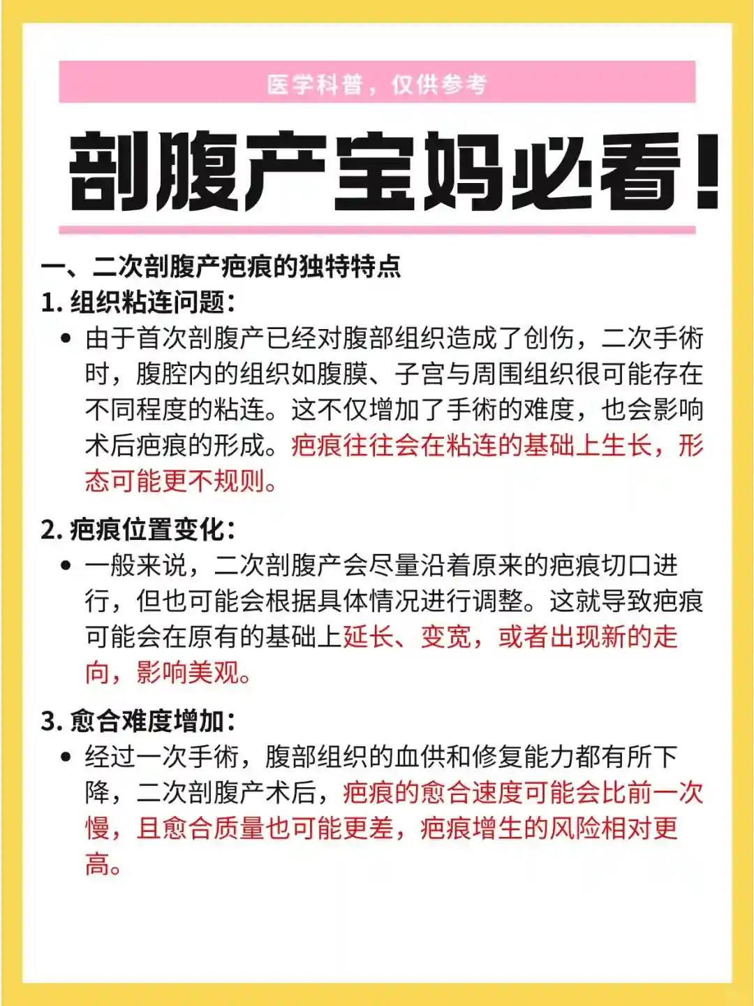 1. 肚子里可能有粘连:一胎手術后,肚子里可能会有粘连,二胎手術时更容易损伤组织,导致疤痕增生。