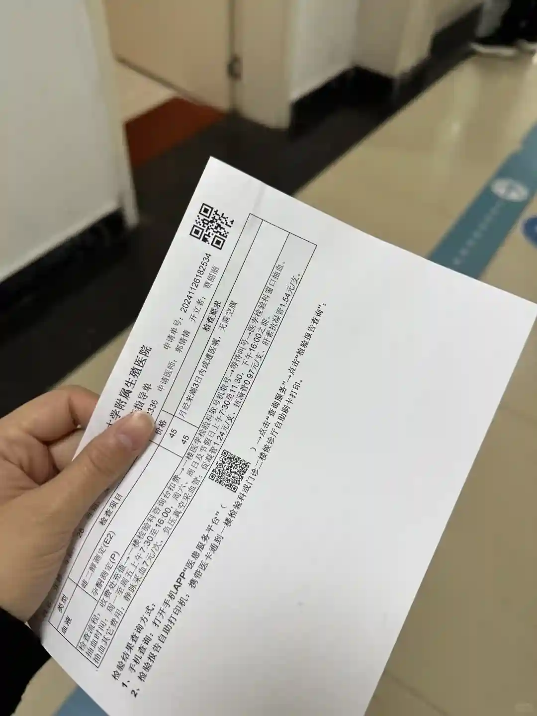 1⃣️抽血:八点抽完血,取了男方的化验单,摁了五分钟准备去卫生间低头一看,🩸溢出来了,再摁也晚了,皮下瘀血了。