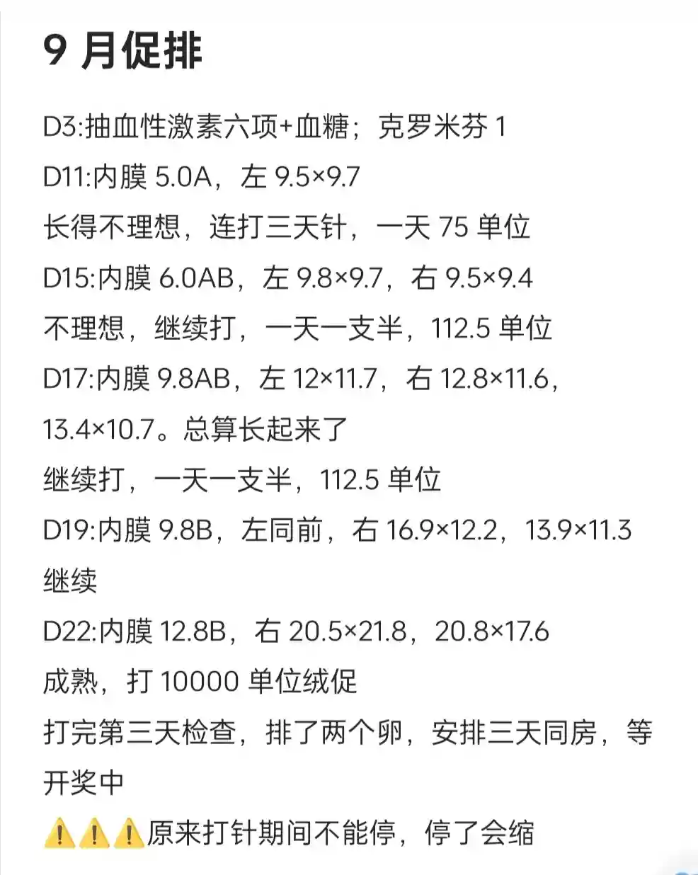 ⚠️⚠️⚠️原来打针期间不能停,停了卵泡会缩,我就是工作原因停了一天,后来才知道不打会缩😑