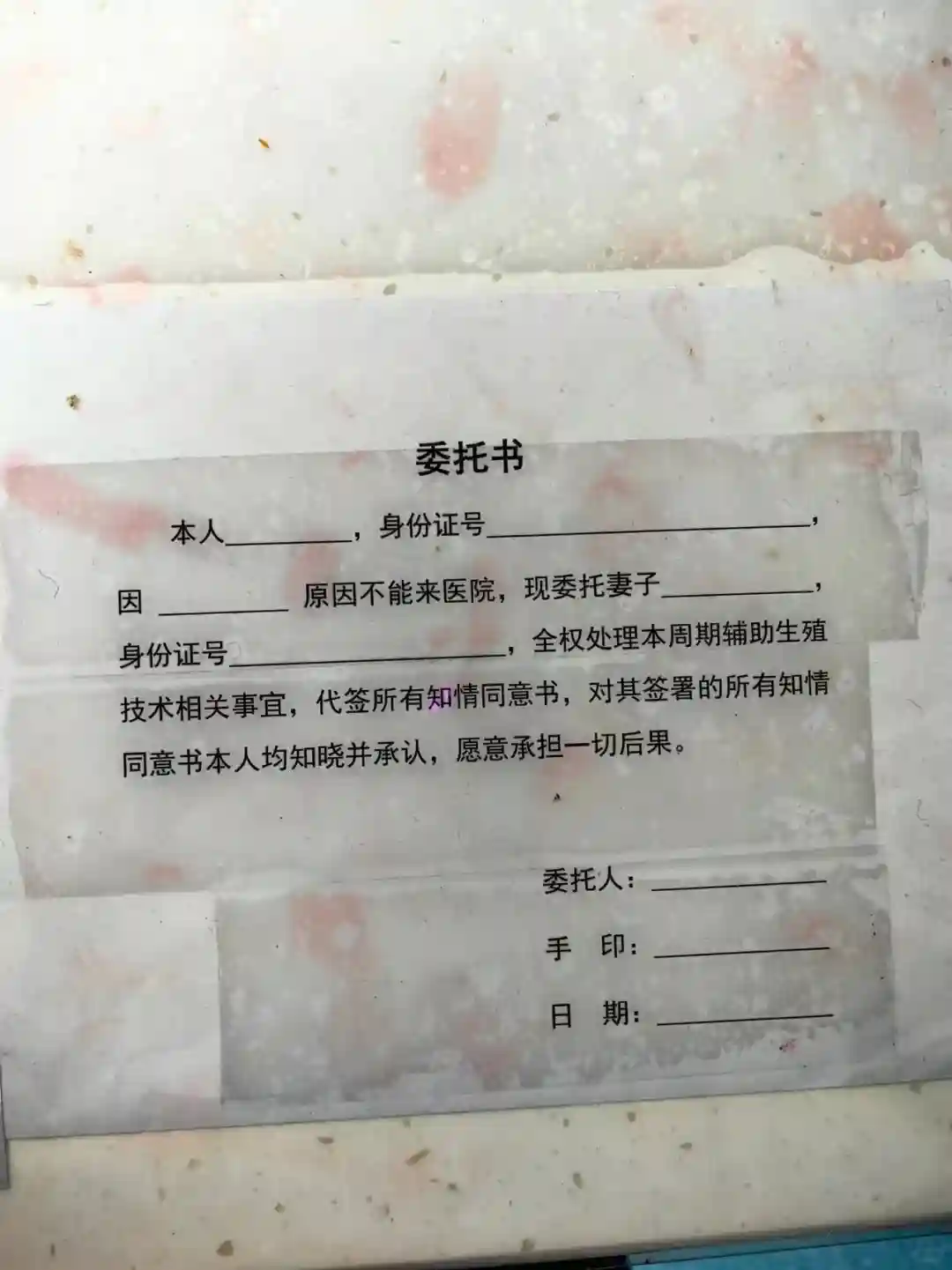2.以上完成后在手术室门外等候叫名,核实身份和资料,记得带:身份证,结婚证(原件),口罩,卡里不低于5000的额度!(军属,丈夫不能在现场时,记得提前写好授权书,上次是上次的,另要再写,模版如图)