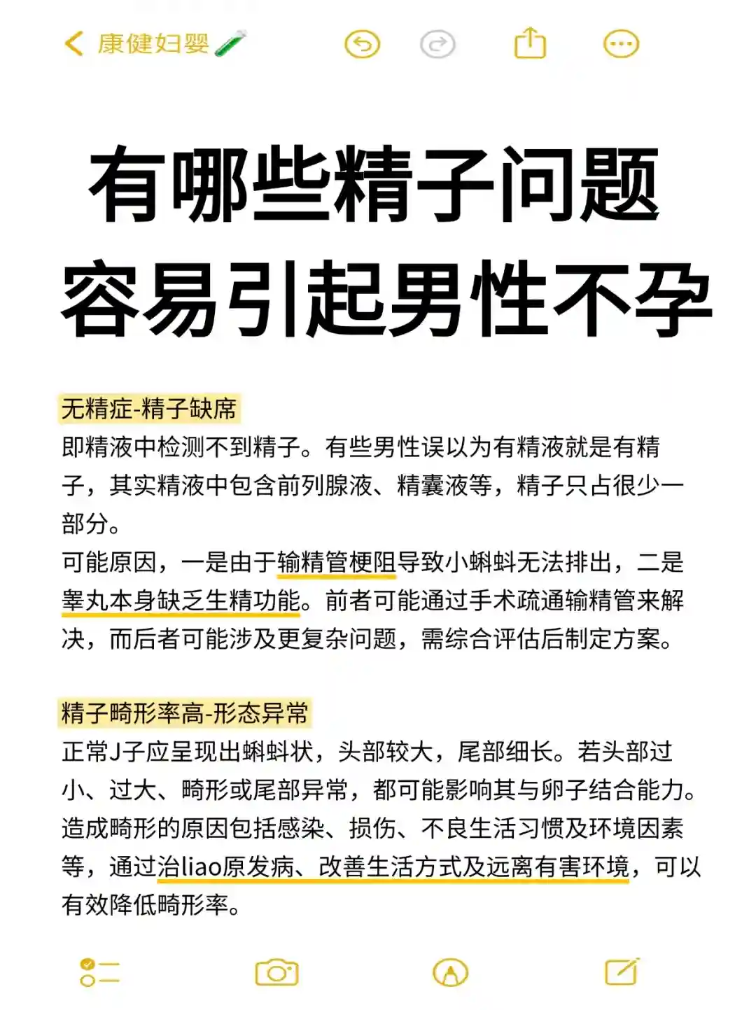 ❌男性不孕主要是出现了与精子相关的异常情况。