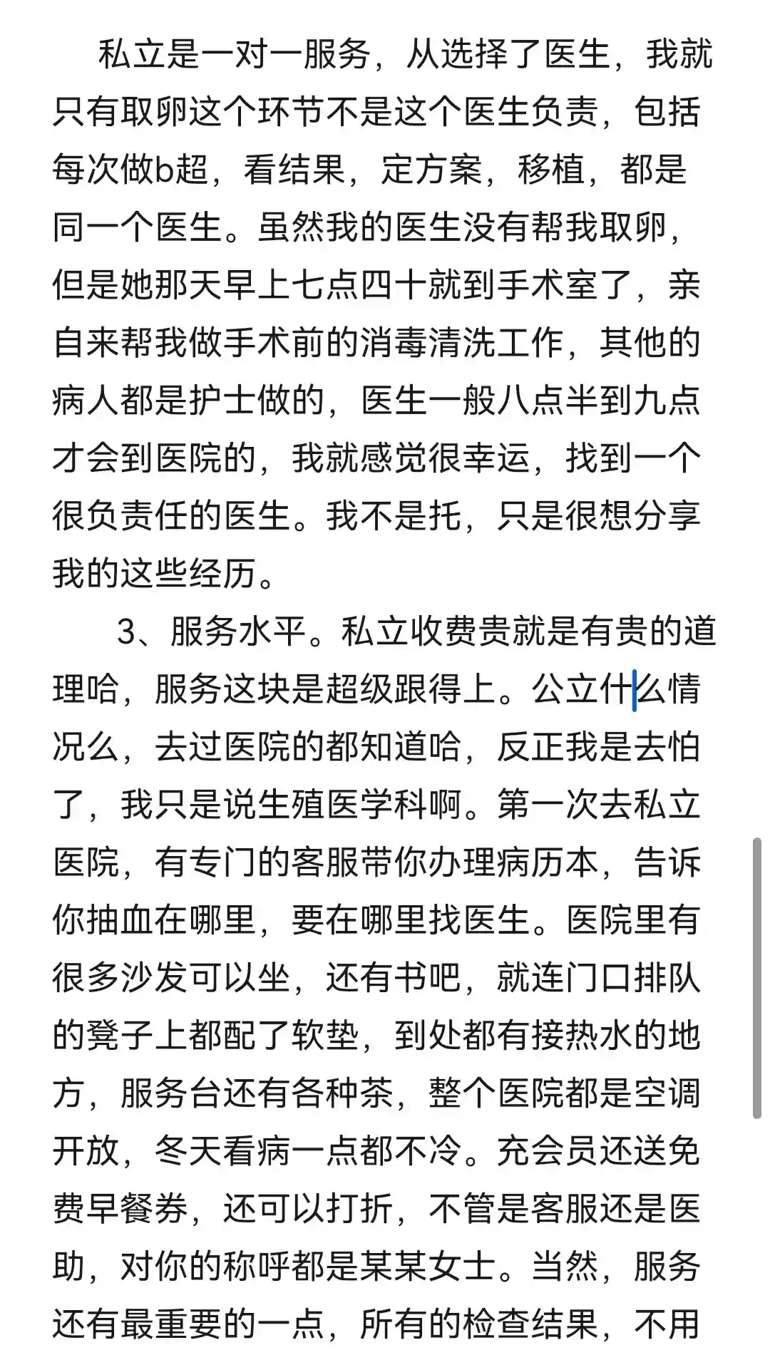 还有就是医院资质、技术、医生水平、体验感的问题,公立私立差距还是挺大的,后面我会说。