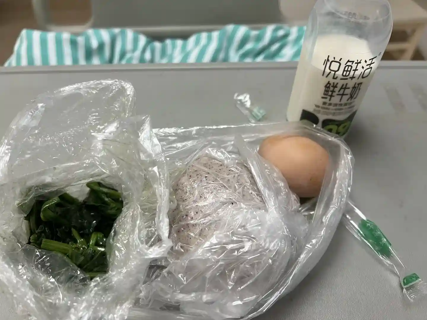 7点早餐吃了鸡蛋菠菜喝牛奶,馒头依然一口没吃