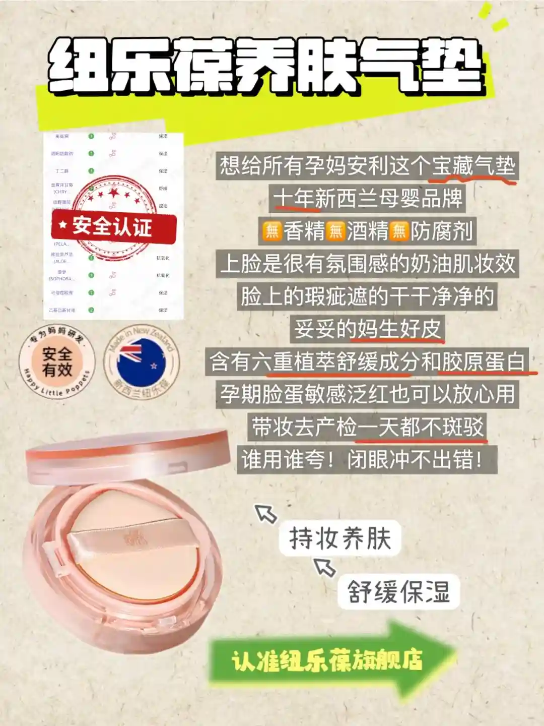 这款是我怀孕之后一直在用的养肤型气垫,他家是10年新西兰母婴品牌,无香精,无酒精,无防腐剂,随便涂开都是清透的奶油,谁见谁夸!闭眼冲不出错