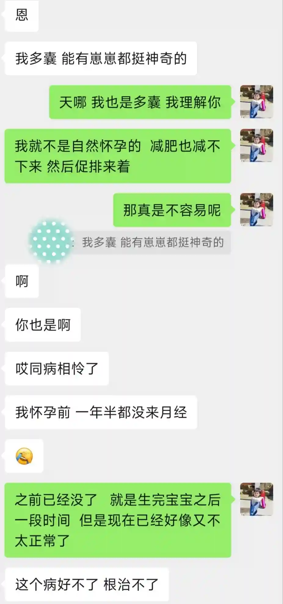 朋友虽然是多囊,但是自然受孕。而我的怀孕之路就显得有一些艰难。