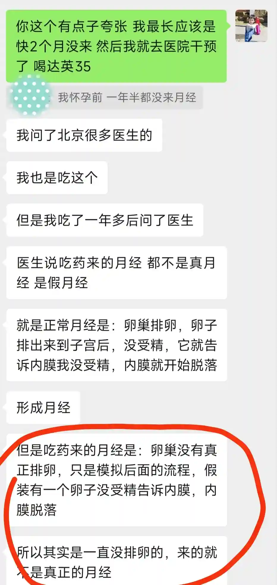 其实19年2月份因月经不调查出来多囊,然后开始喝了一年多达英35后月经恢复正常就停药了。20年8月份想要有个宝宝的时候,才得知多囊并不利于怀孕,医生也才告诉我说其实我最好的怀孕时间是停达英35以后的一个月,我哭死。(19年看的医生和20年看的不一样)